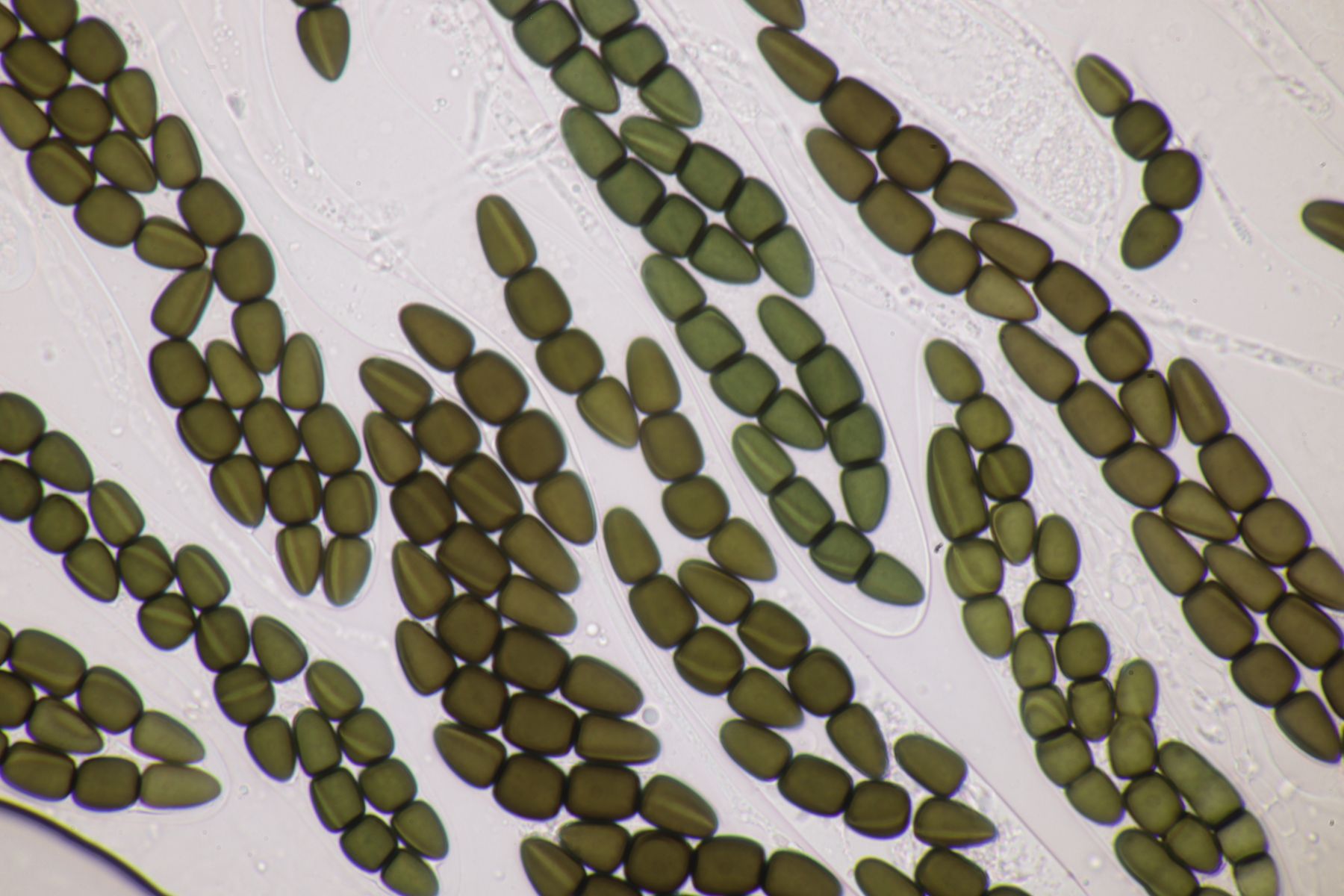 es gibt offenbar doch noch Pilze, die die Literatur lesen und dann ihre Fruchtkörper genau so ausbilden, wie es vorgeschrieben ist! Wobei ich hier richtig Glück hatte: Ich habe genau diesen einen Fruchtkörper gefunden, der eine überschaubare Anzahl an Asci enthielt und habe dann ein halbwegs gelungenes Präparat hinbekommen. Ich sollte mir vielleicht angewöhnen, die Köttelchen, von denen ich gerade einen Pilz entnommen habe, irgendwie zu markieren, weil man dann ja eine größere Wahrscheinlichkeit hat, Dinge noch mal wiederzufinden (sofern es sie mehr als einmal gibt).