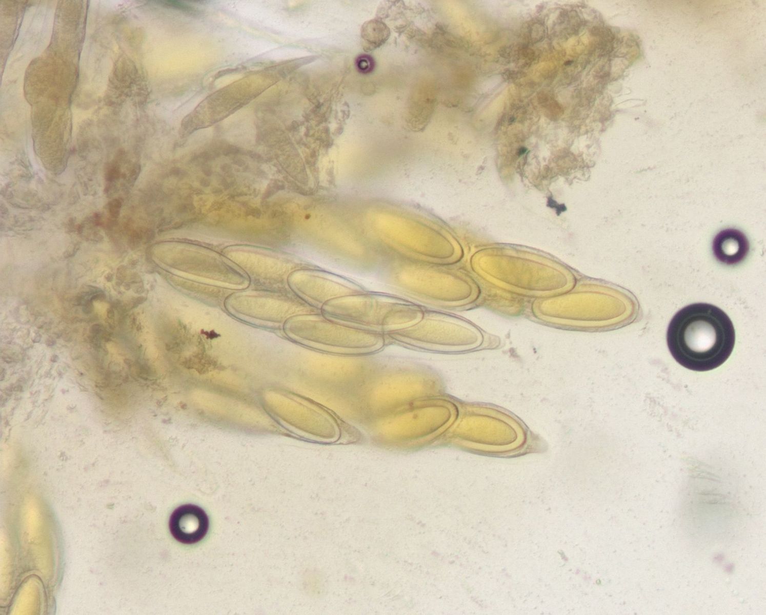 Bei Doveri finde Terminal hairs flexuous or more often spirally coiled, unbranched. Ascospores 8–10 x 6.5–9.5 × 5.5–7.5 μm (9–12 × 8–10 × 6–8, von Arx et al.) C. globosum [2004 f.d., 2008 c.p.]