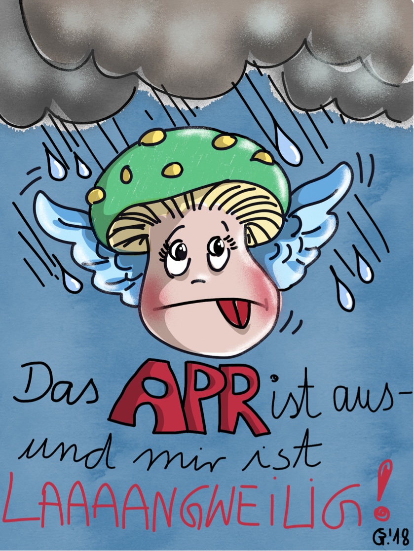 So, jetzt ist das APR wirklich vorbei...die Signatur, das Profil und der Avatar sind aufgeräumt und aktualisiert, das APRUPR ist auch bald durch, der Alltag kann wieder einkehren, der FRÜHLING kann kommen! 🌷🪻🌱🍄🌿🪺