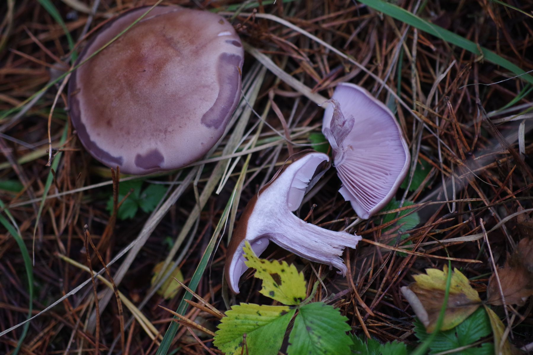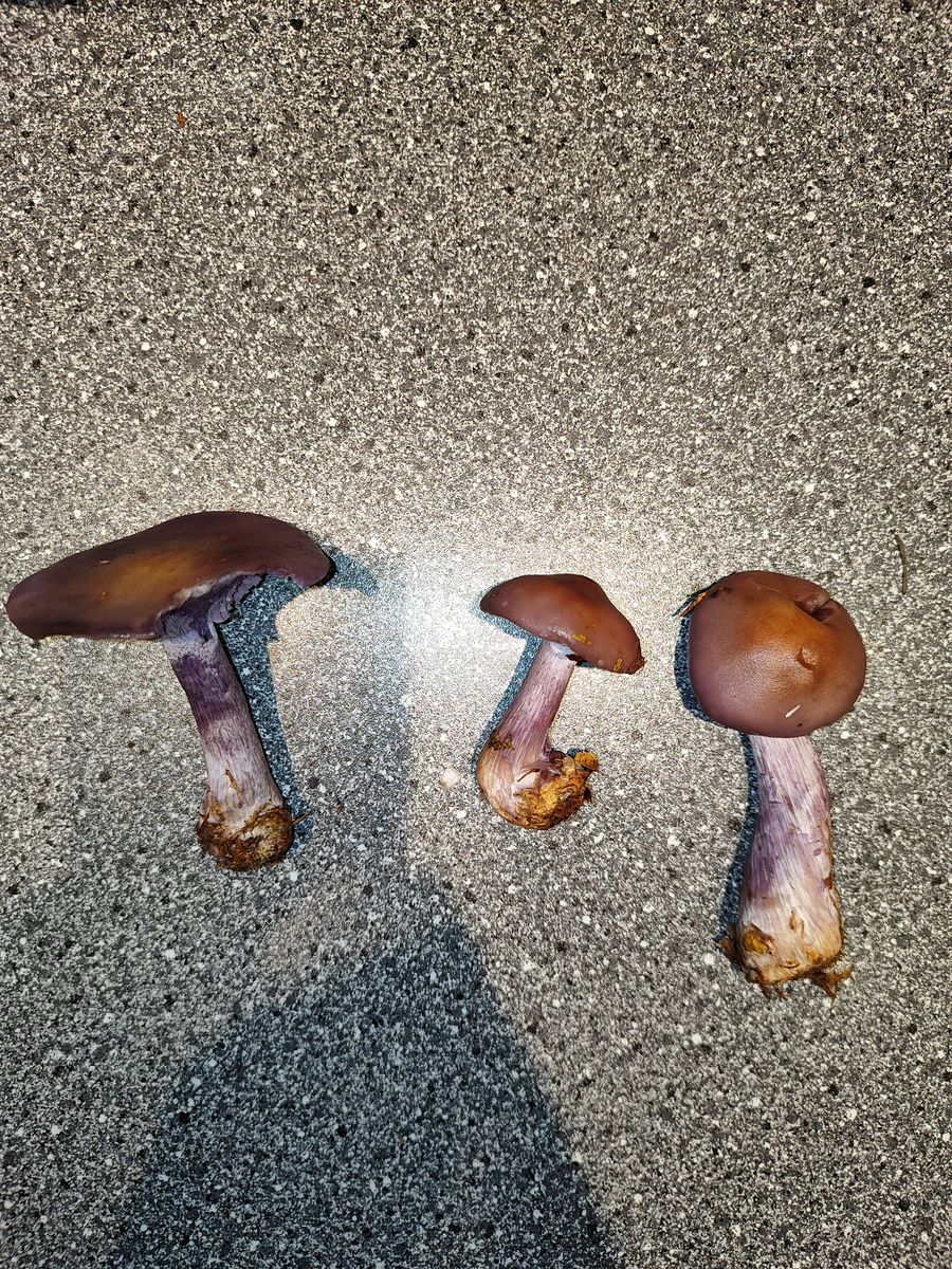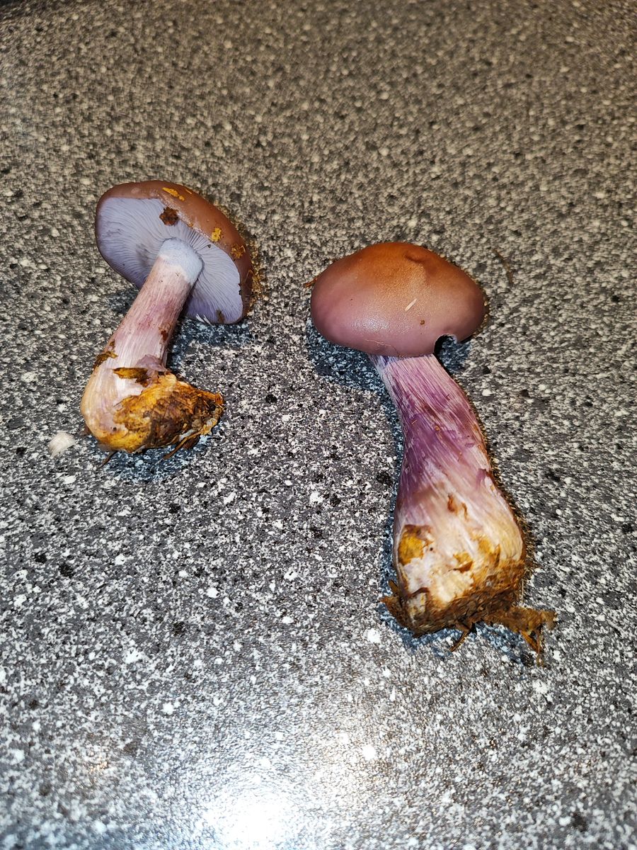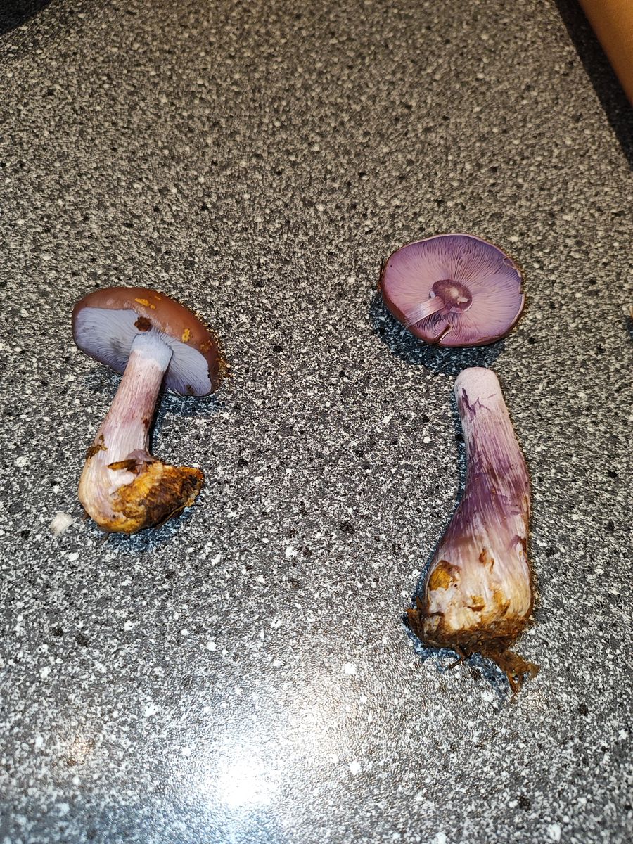bei meinem heutigen Streifzug durch den Mischwald bin ich über folgende violett-braunen Pilze gestolpert.