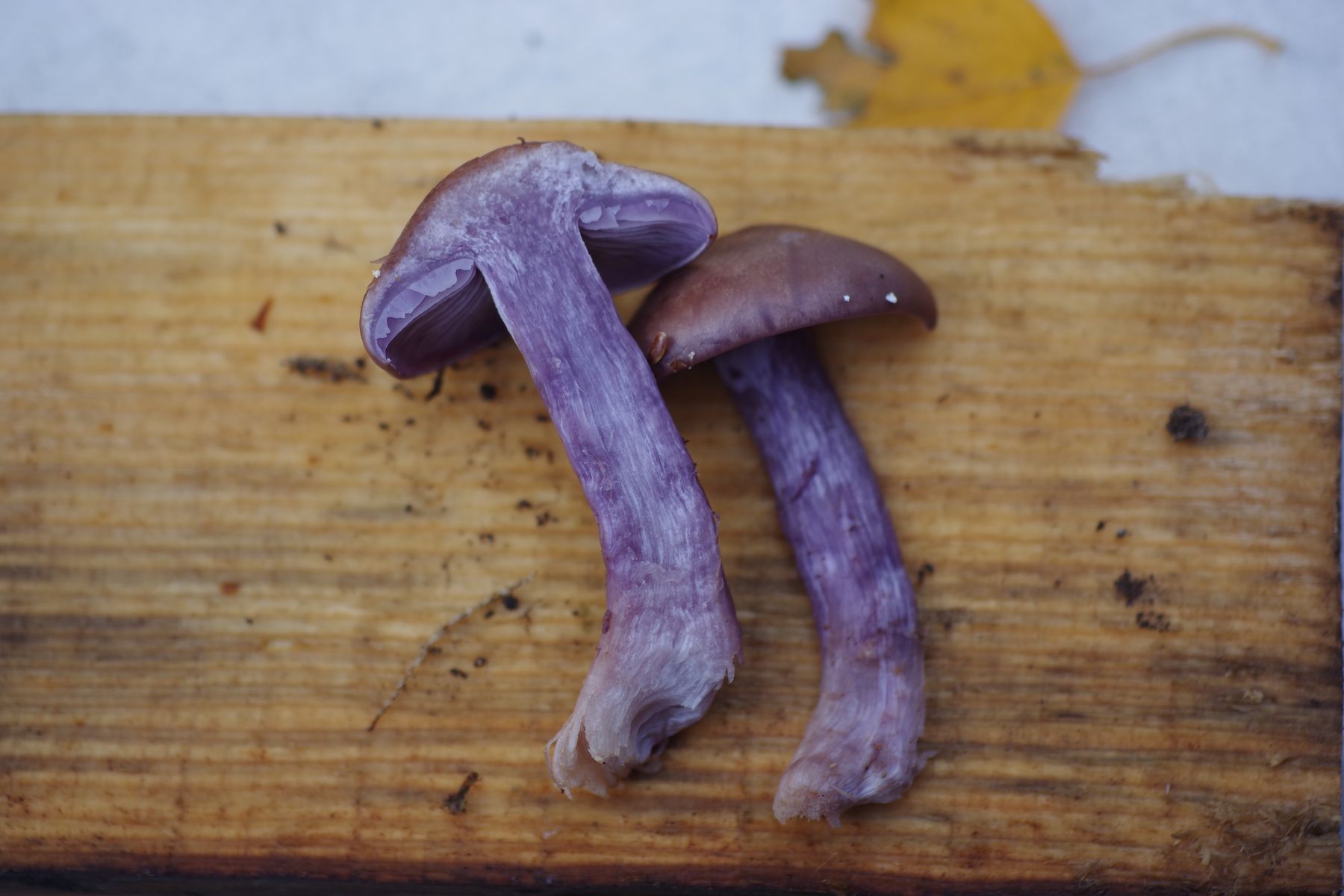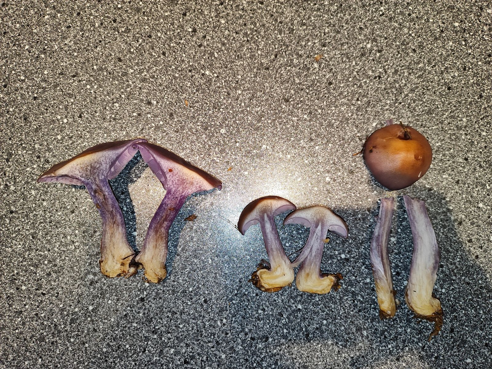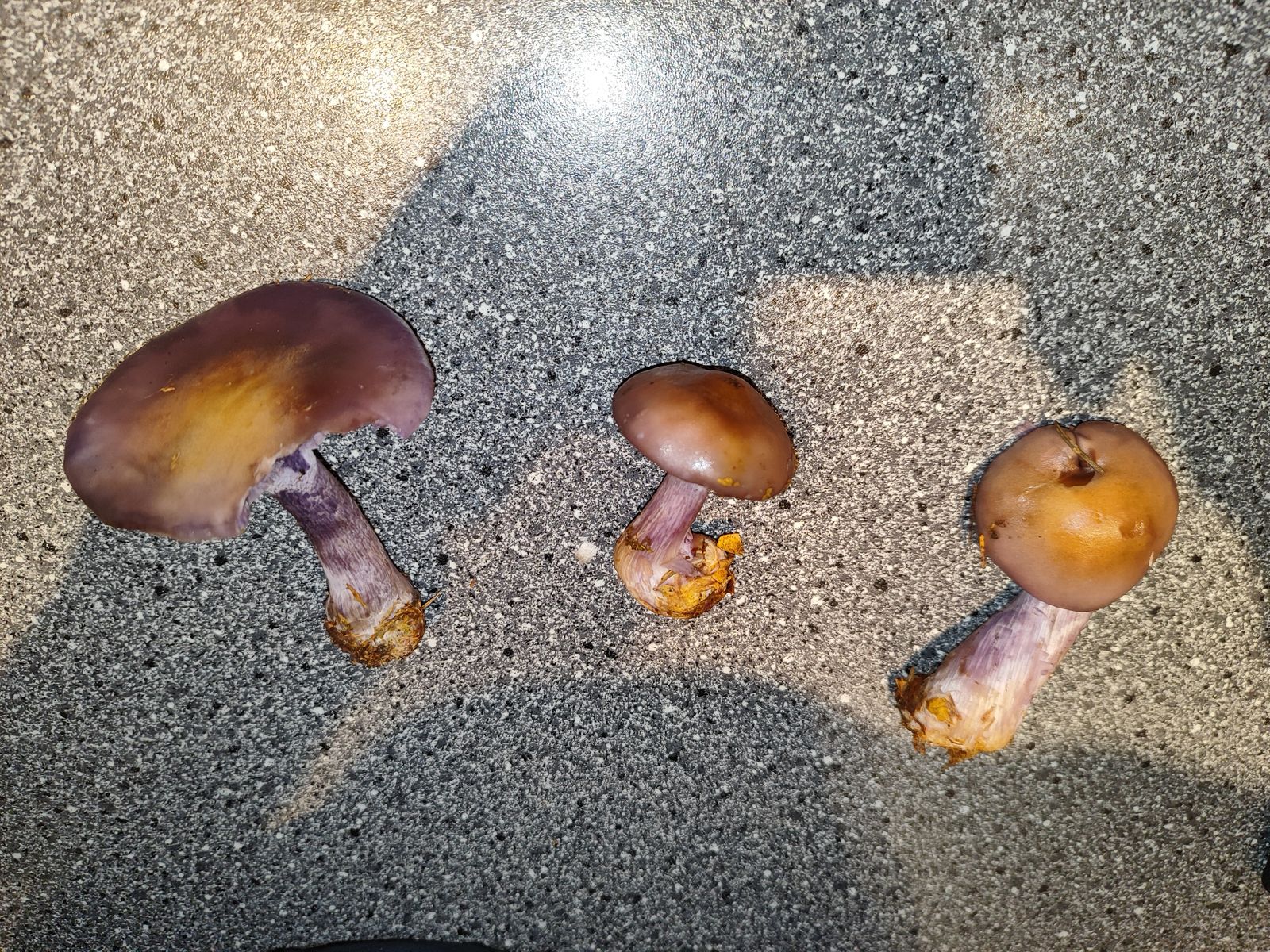 bei meinem heutigen Streifzug durch den Mischwald bin ich über folgende violett-braunen Pilze gestolpert.