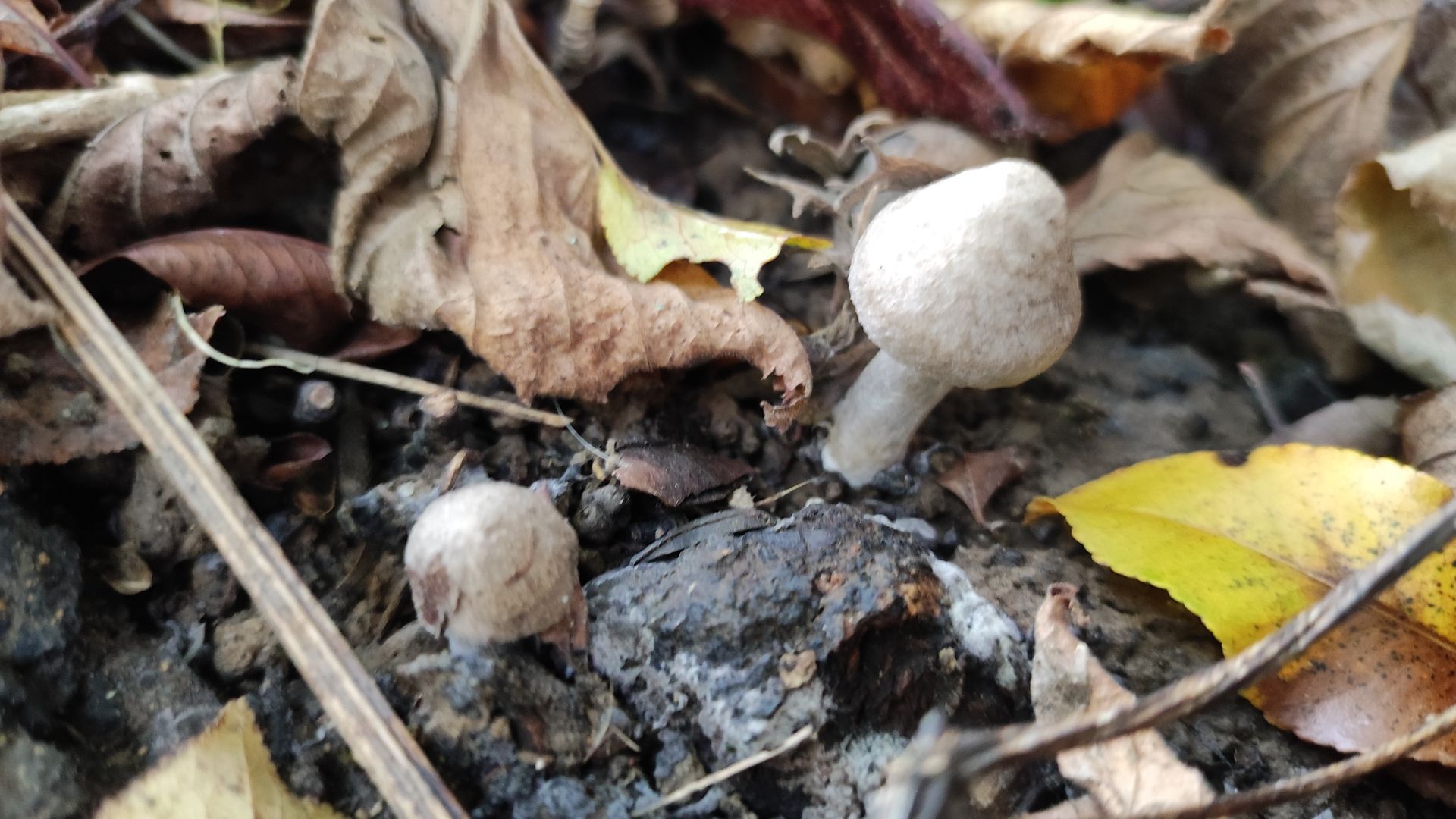Die zweite Pilzart, die ich fand, war ein Grßppchen kleiner Helmlinge in unmittelbarer Nähe eines Fichtenstumpfes.