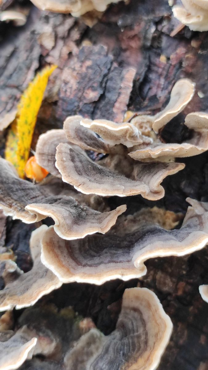 26. - 27.: Pilz 4: Wahrscheinlich Schmetterlingstrameten (Am Fichtenstumpf)