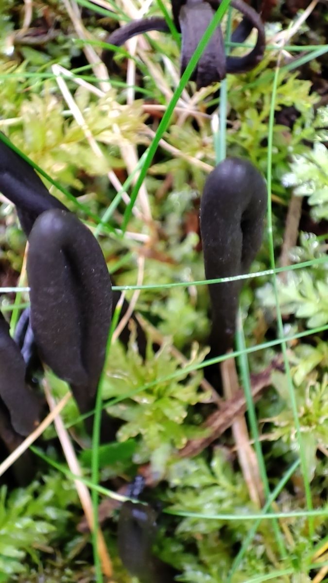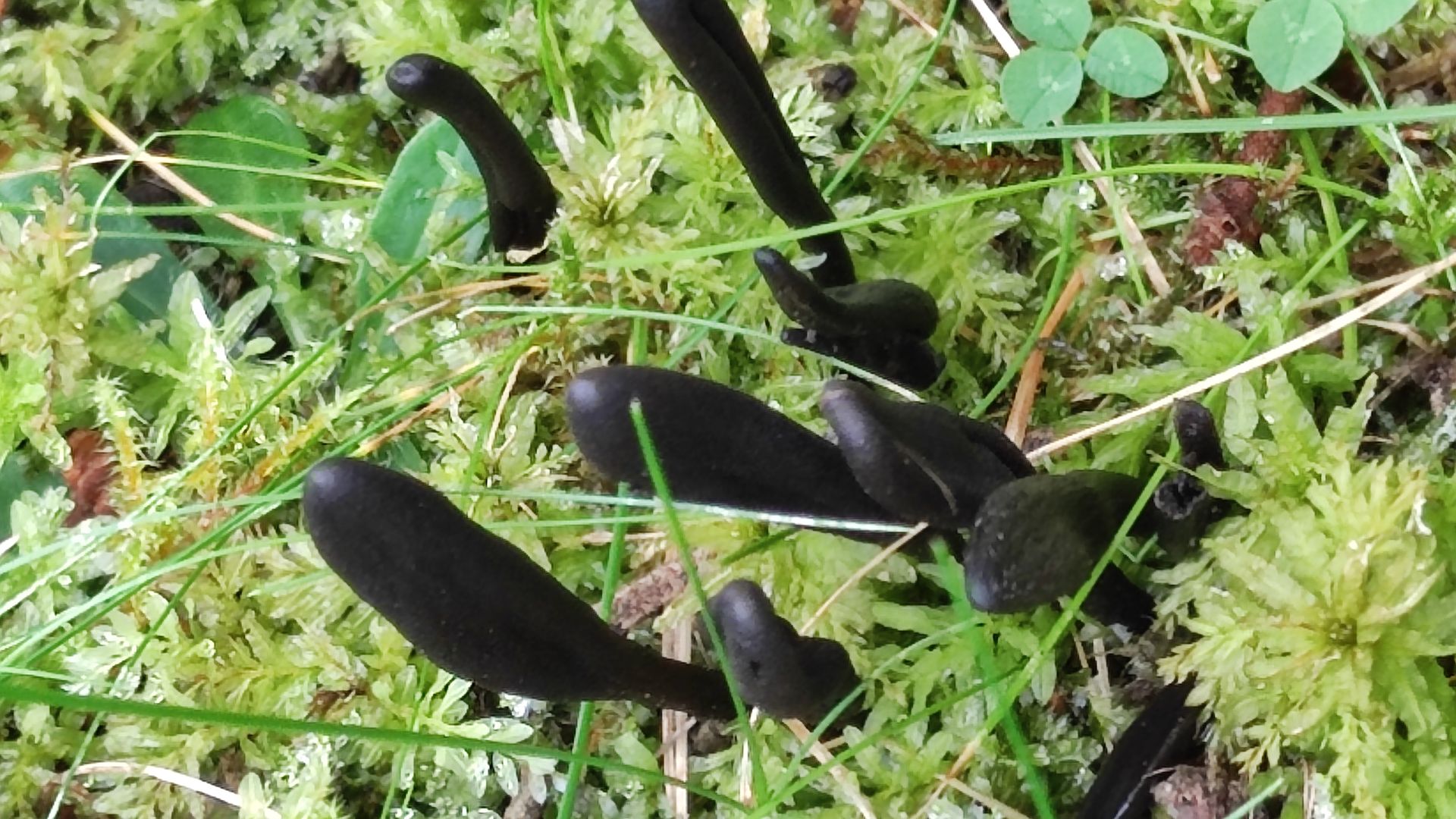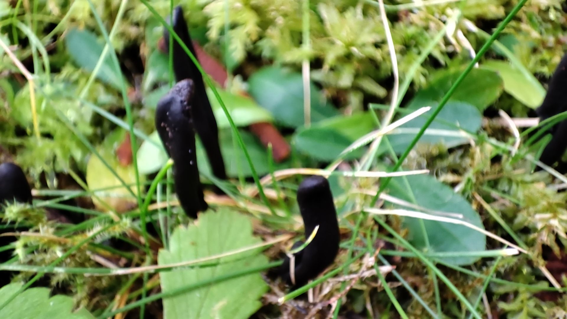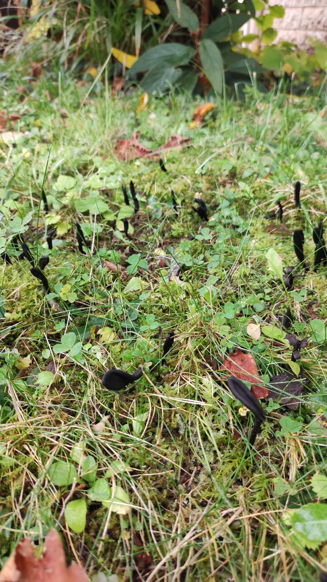 31. - 40.: Die Erdzungen (vllt Geoglossum fallax?) an ihrem Wuchsort in einem Garten in unserer StraĂe: