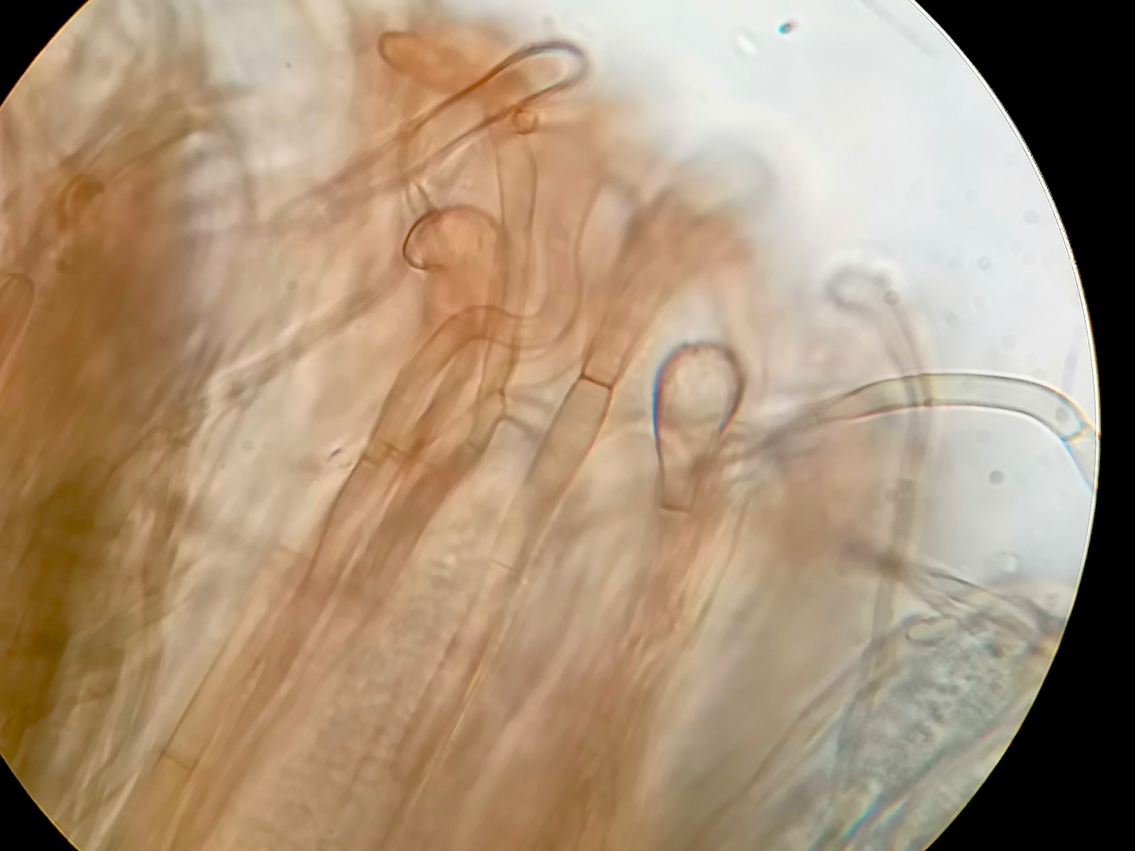 STIELBASIS: Bei jßngeren Expl. leicht verdickt, bei älteren gerade, bräunlich