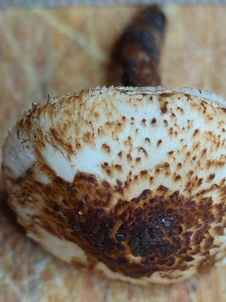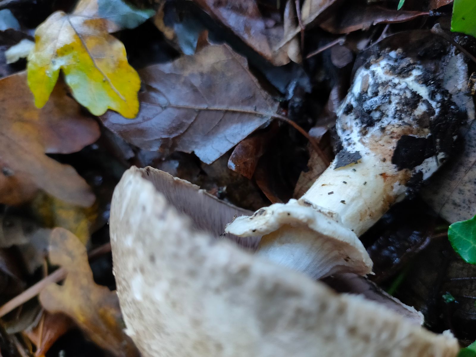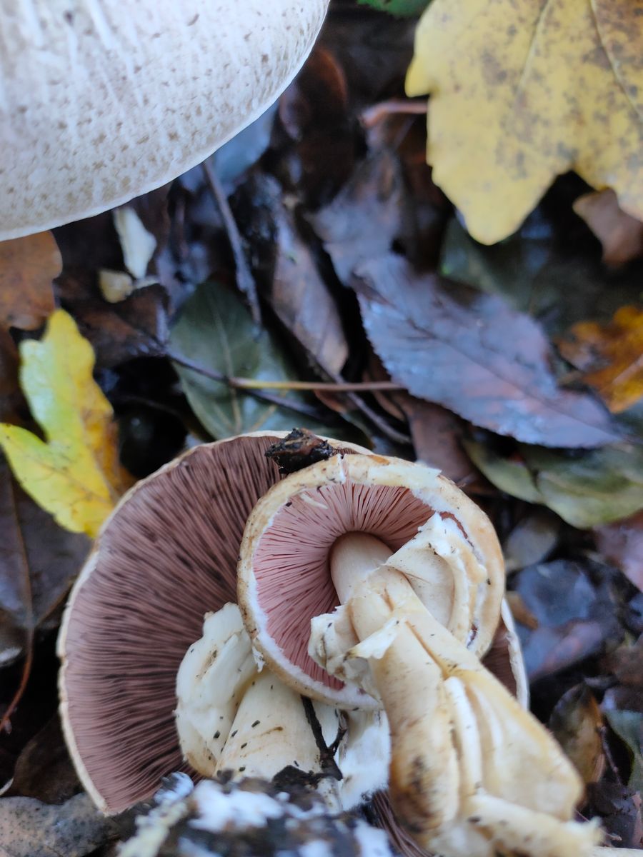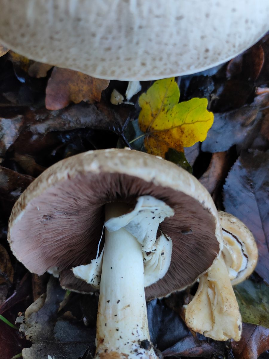 3. Ein Agaricus mit unangenehmen Geruch. Dieser wurde neben dem Radweg am Straßenrand im Laub gefunden. Der Ring ist aufsteigen lappig und dünn. Dieser gilbt nicht bei
