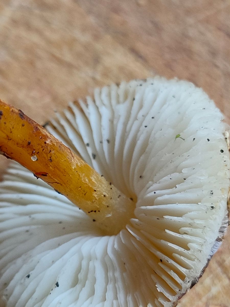 Berührung und das Fleisch zeigte nur an der Stielbasis eine leicht Verfärbung. Aber eher ein Braun als Gelb, siehe Bilder.