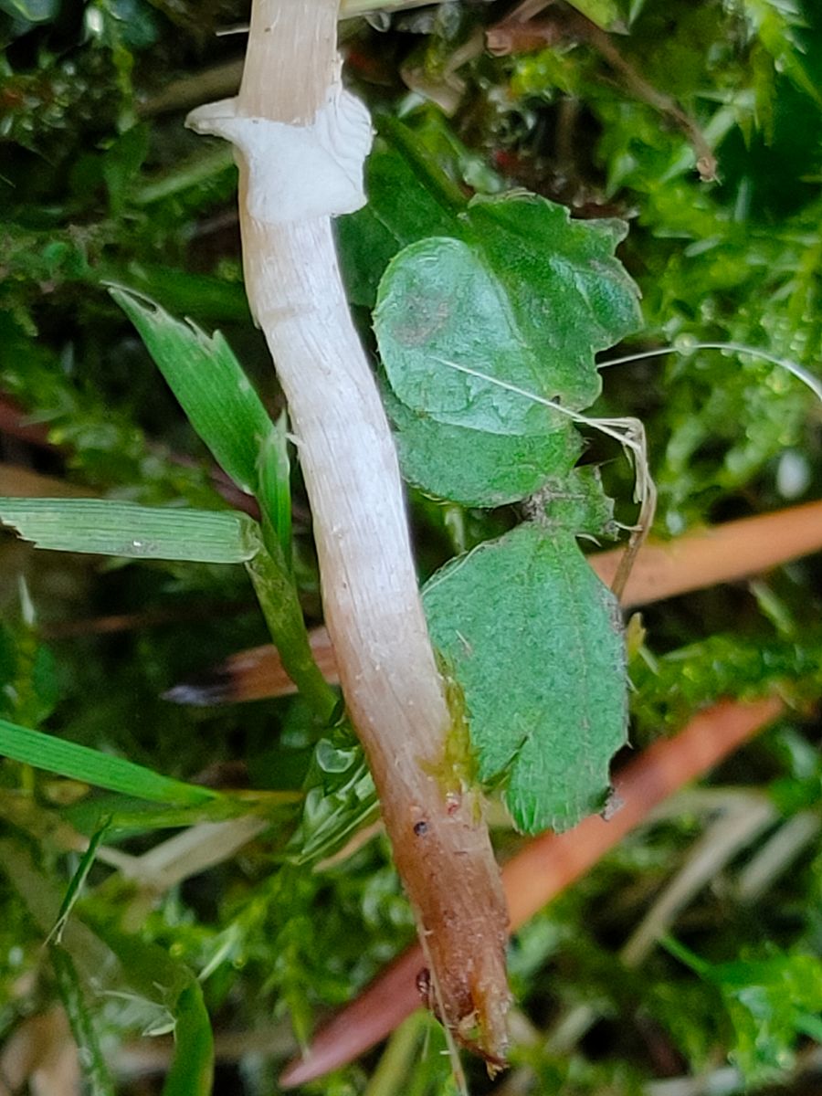 Ein recht kleiner Wiesenpliz mit 1,5 cm Hutdurchmesser. Der Hut ist Rot und leicht gerieft. Dieser hat einen auffälligen dünnen Stiel der unterhalb der Ringzone