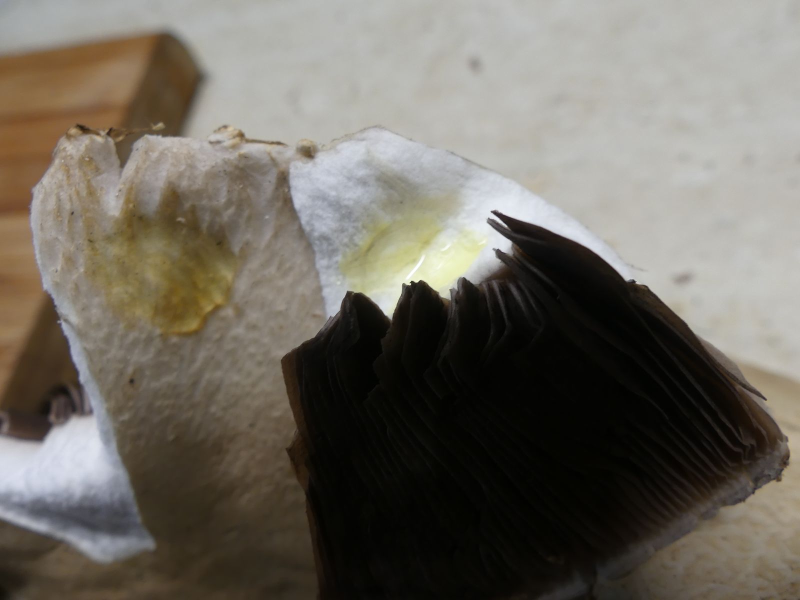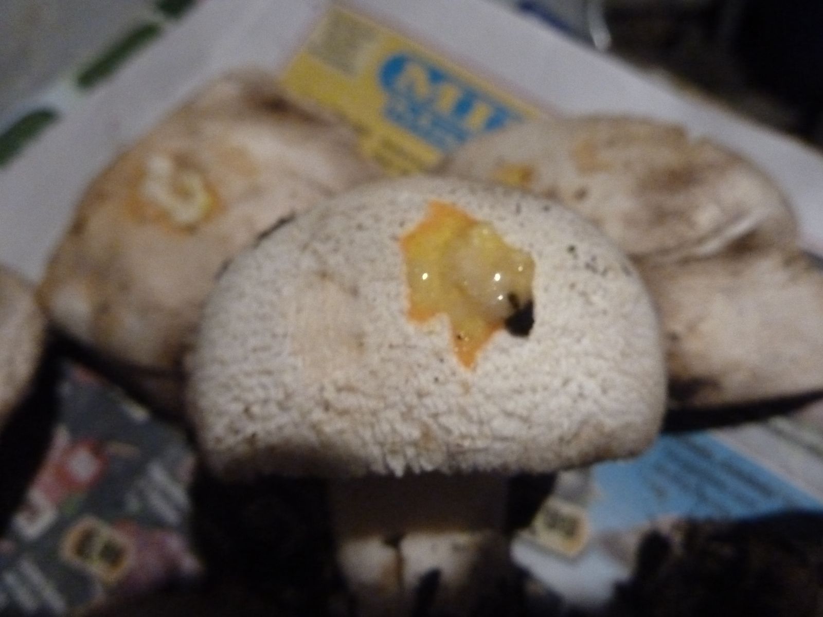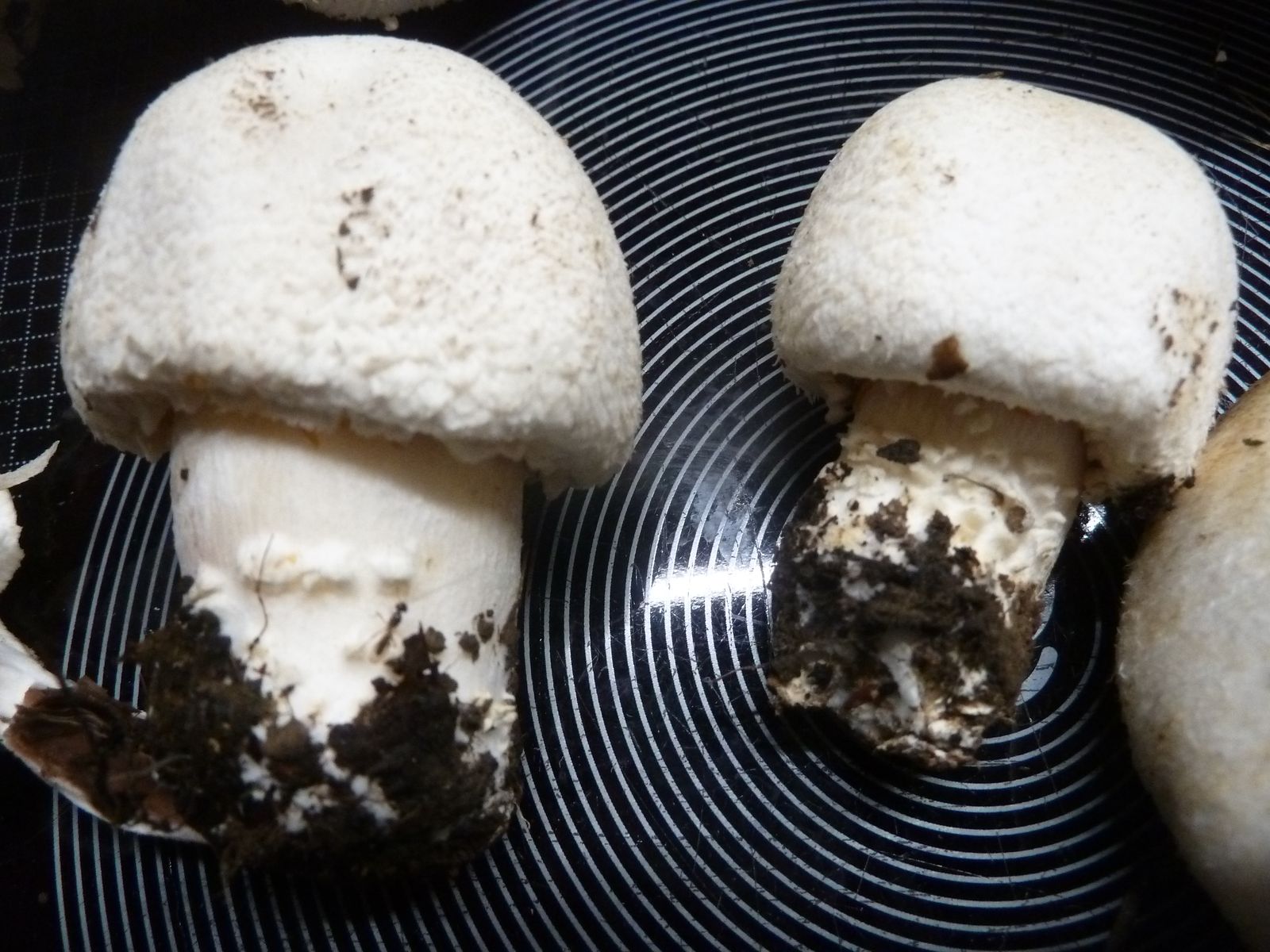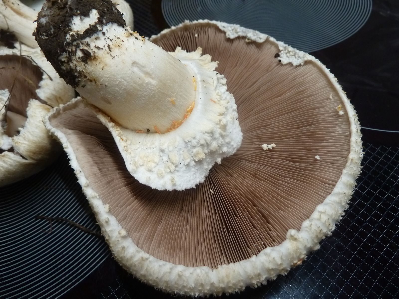 Keine Riesenchampignons mangels Marzipangeruch. Die Lamellen gab's in allen Tönen von schwach rosa bis dunkelbraun, siehe Fotos. Ich bin gespannt, ob ich richtig liege. ![]()
