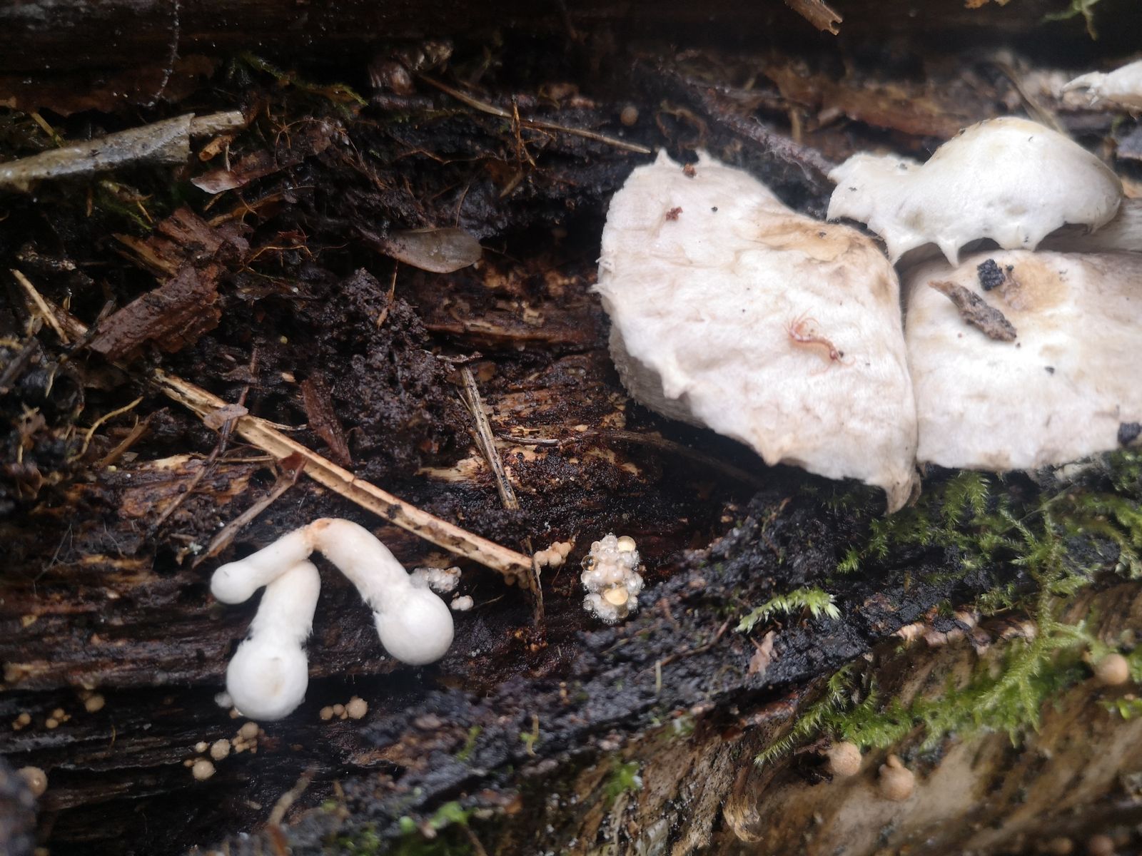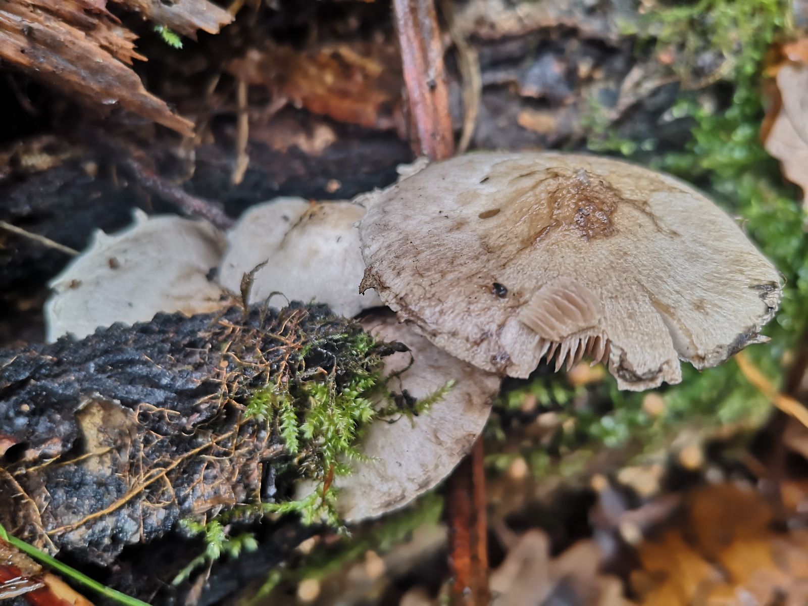 bei diesen an liegender toter Birke wachsenden Pilze bin ich mir ziemlich unsicher. Schönbuch bei Tübingen - Mischwald mit viel Fichte, Birke, Buche.