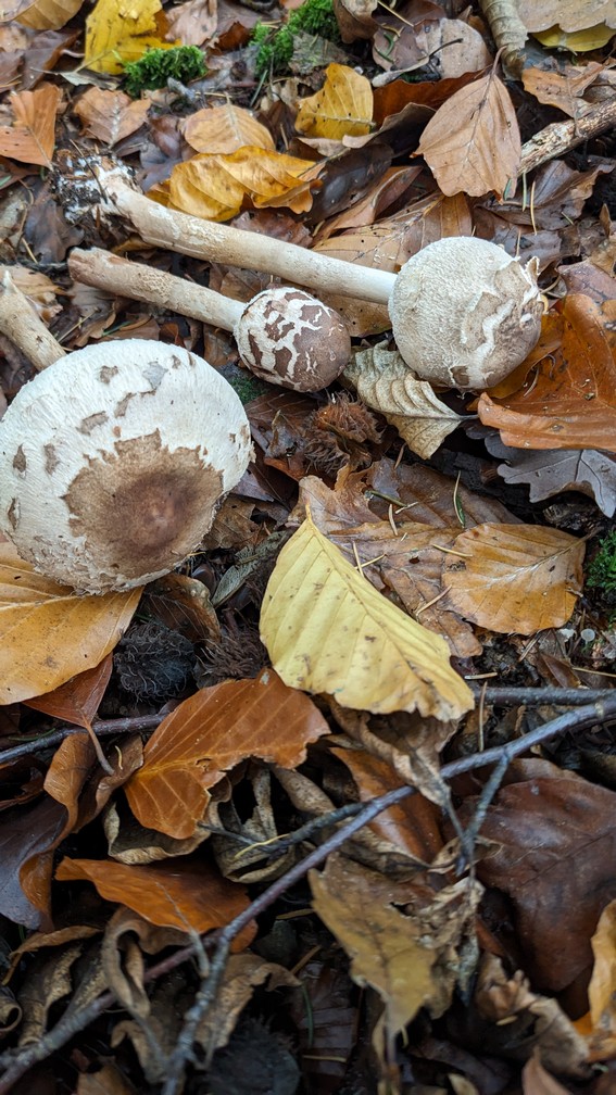 Die Natterung am Stiel ist vorhanden. Aber auch wieder eher fein und nicht so ausgeprägt wie bei den Parasolen unten.