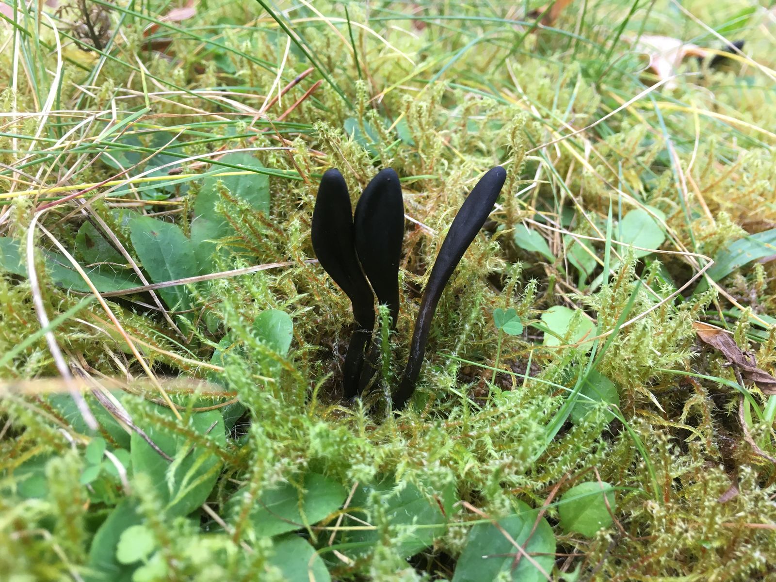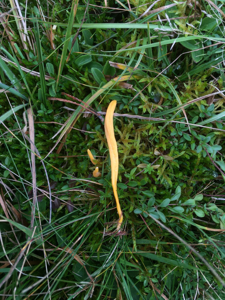 schleimige Erdzunge: Glutinoglossum glutinosum (reingemolgelt, wuchs eigentlich auf "meiner" Hauswiese, war aber so adrett das Dreiergespann)