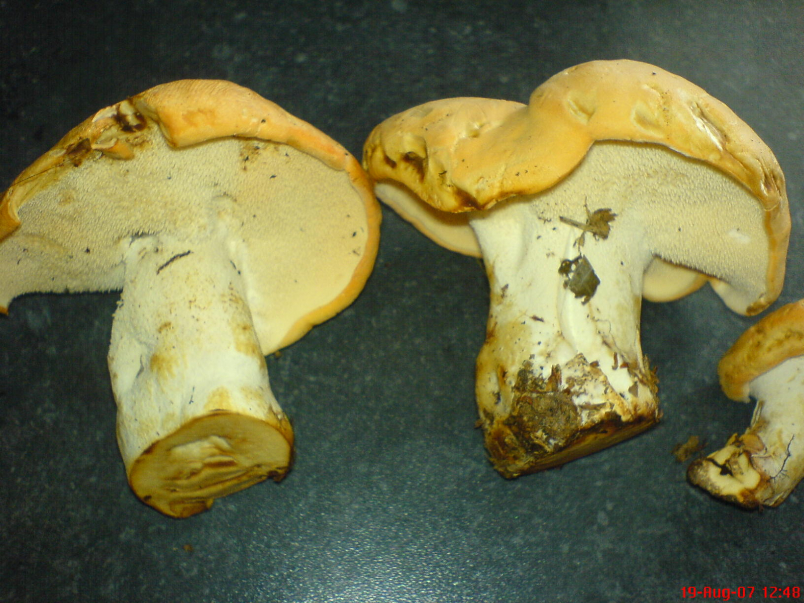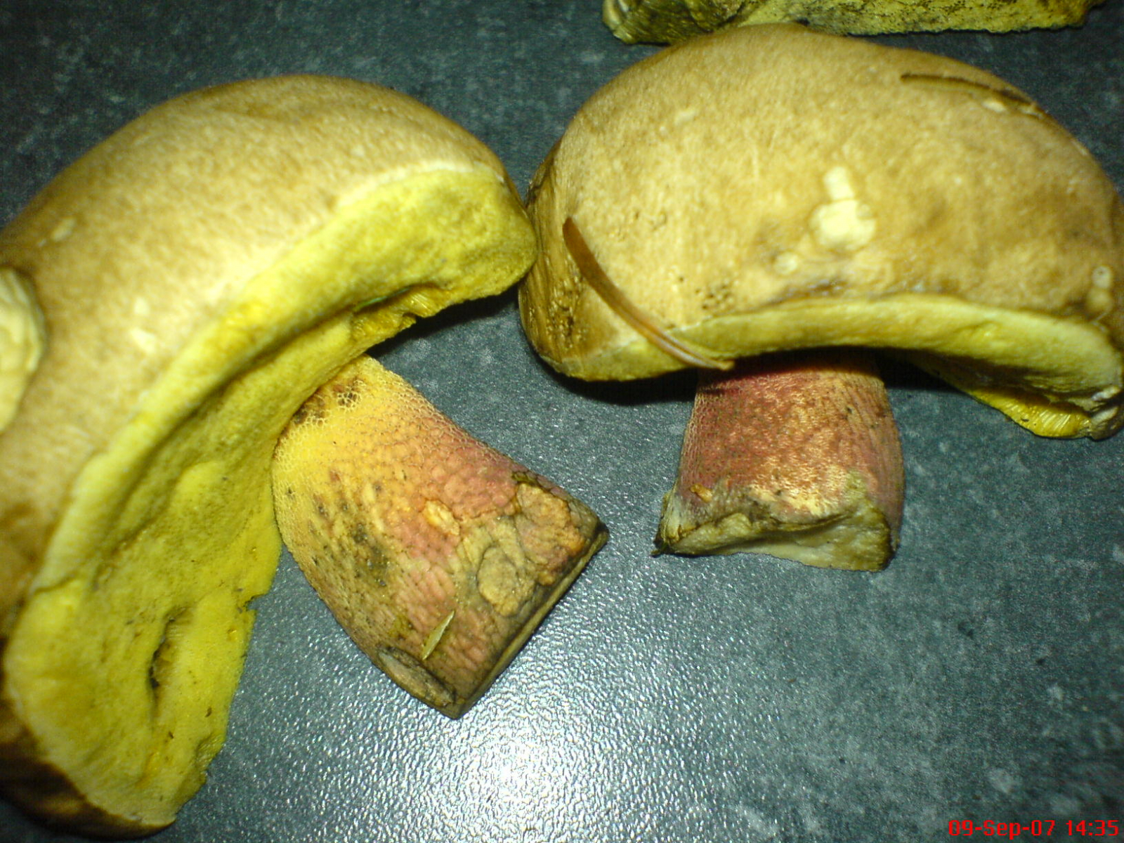 (2) Dennoch sieht es so aus, als ob du mindestens zwei verschiedene Röhrlingsarten zeigst. So glaube ich auf Bild 1 (links unten), Bild2 (links unten) und Bild 3 (untere Fruchtkörper) Rotfuß-Röhrlinge zu erkennen.