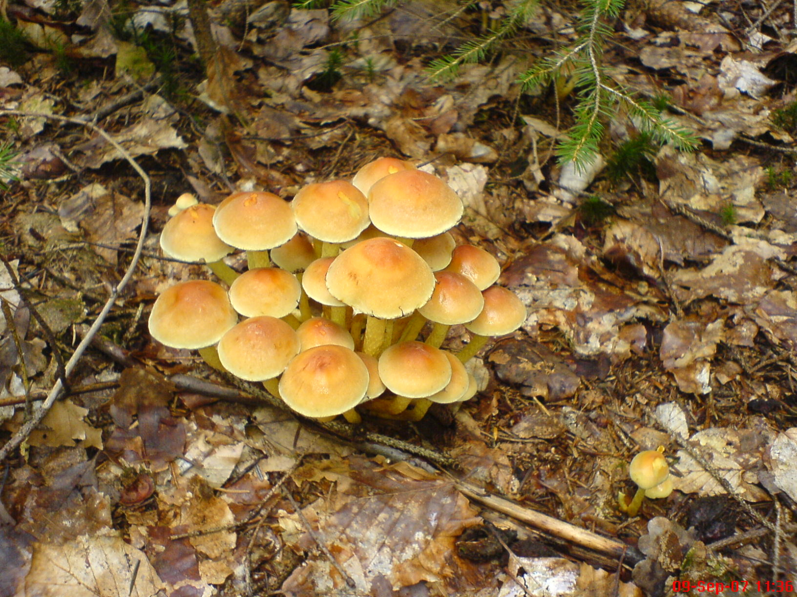 Bilder 6 und 7 zeigen, da bin ich mir (fast 100-%ig) sicher Grünblättrige Schwefelköpfe (Hypholoma fasciculare)