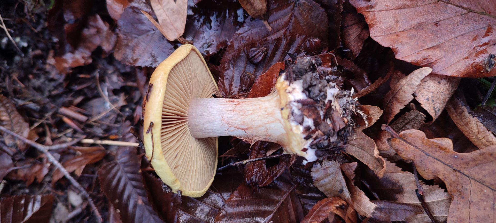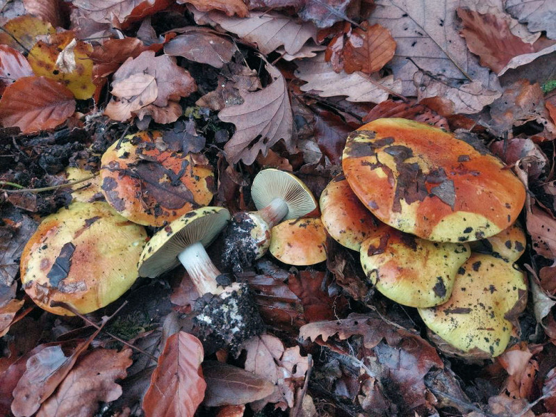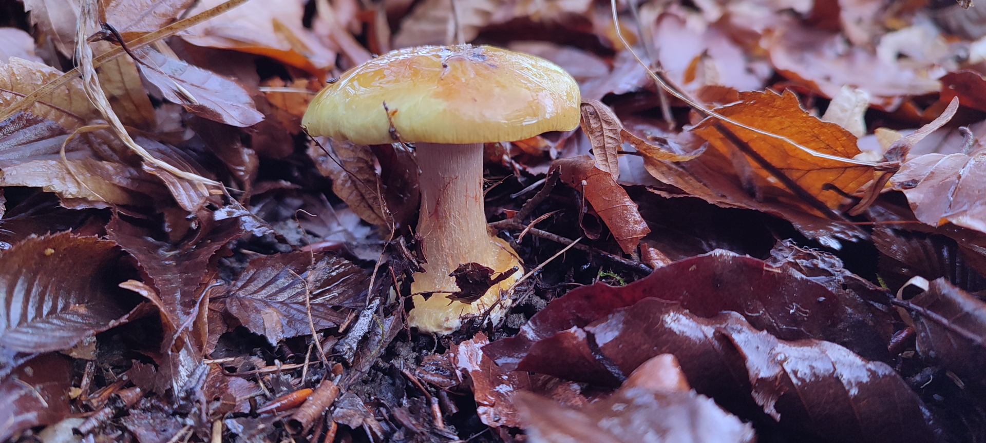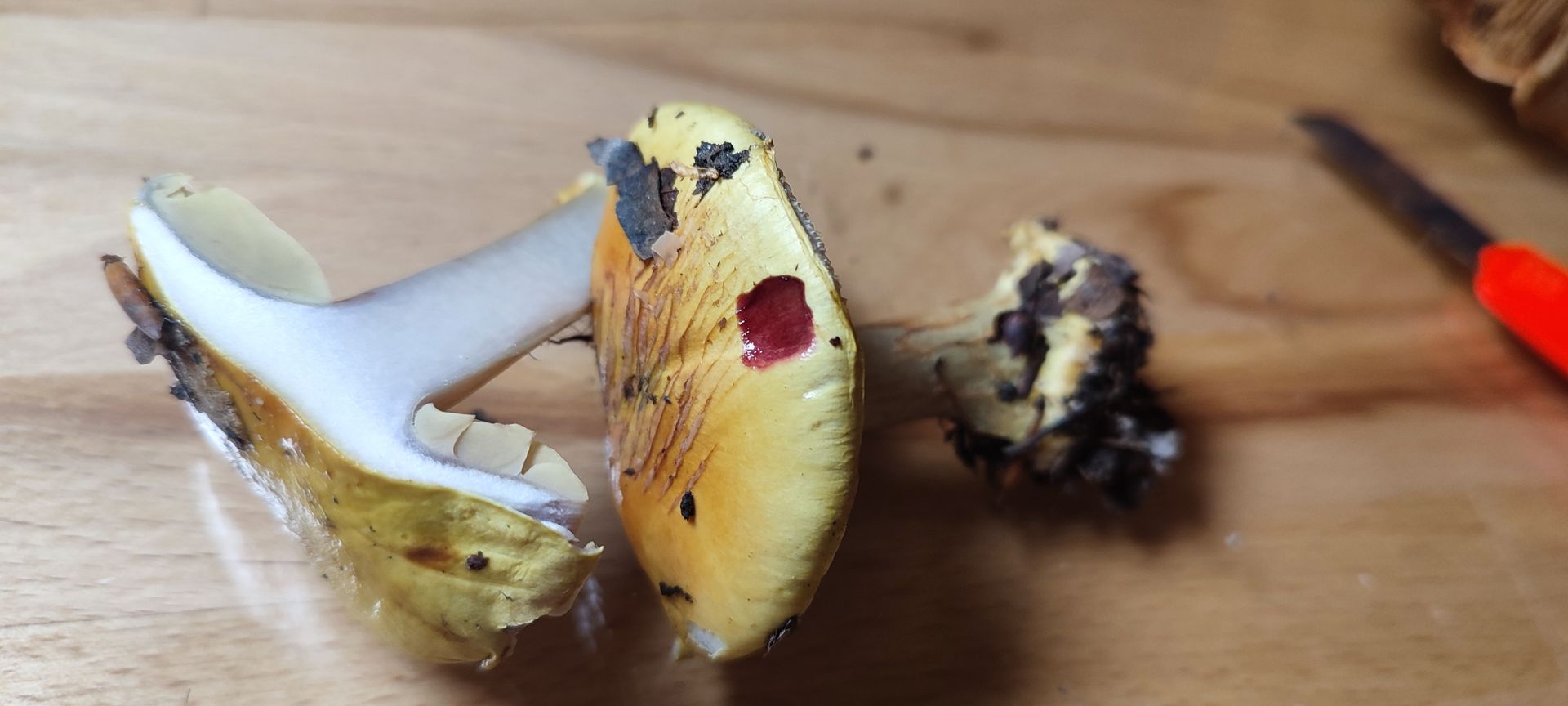 Hut: Gelb im Randbereich bis Orange in der Hutmitte - deutlich schleimig