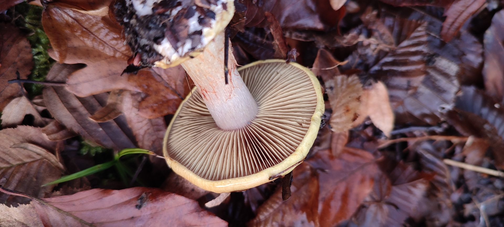 Basis: Gerandet-knollig mit gelblichen Velumresten