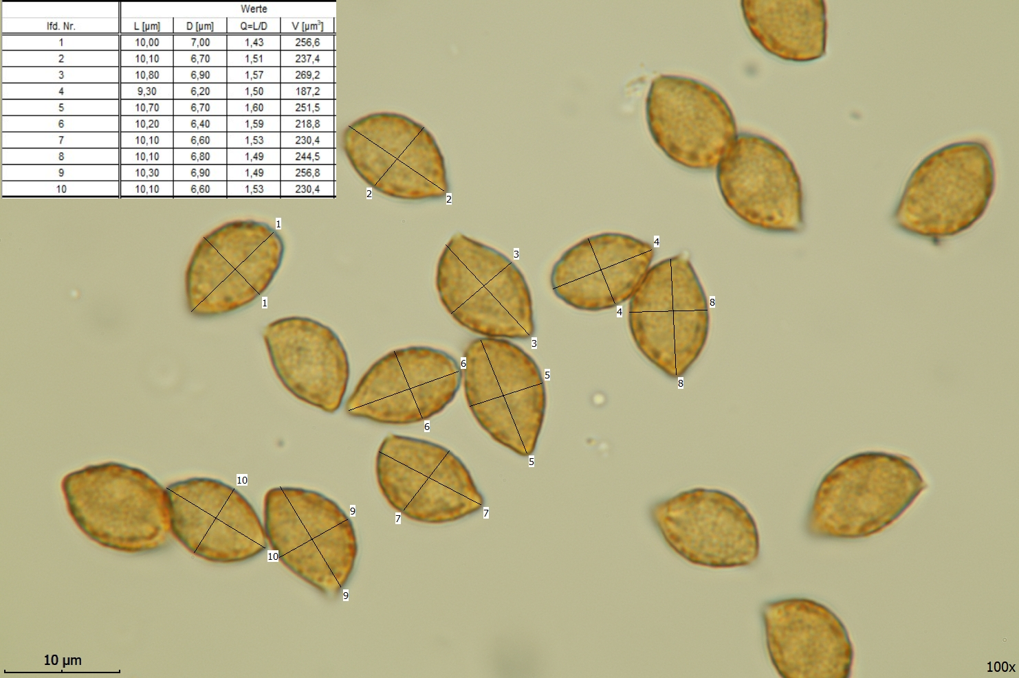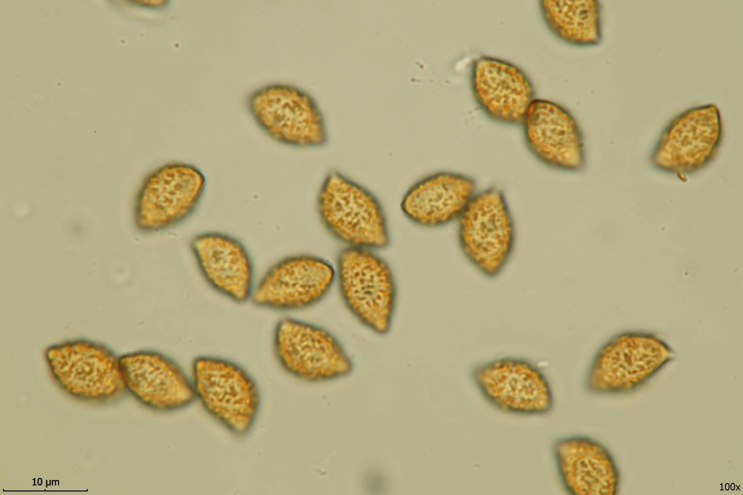 Sporen: Limoniform 9,3-10,7 x 6,2-7 µm