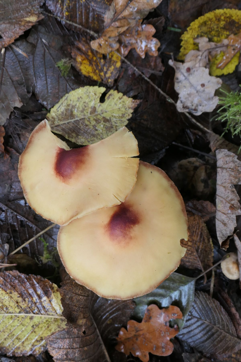 Man darf noch im Hinterkopf haben, dass es es beim Purpurfilzigen/Rötlichen Holzritterling um mehrere Arten handelt. Hier wirken die Lamellen schon auffällig entfernt stehend.