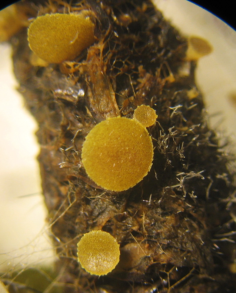 Die grauen Stäbchen sind/ist vermutlich eine Doratomyces-Art mit glatten Sporen,