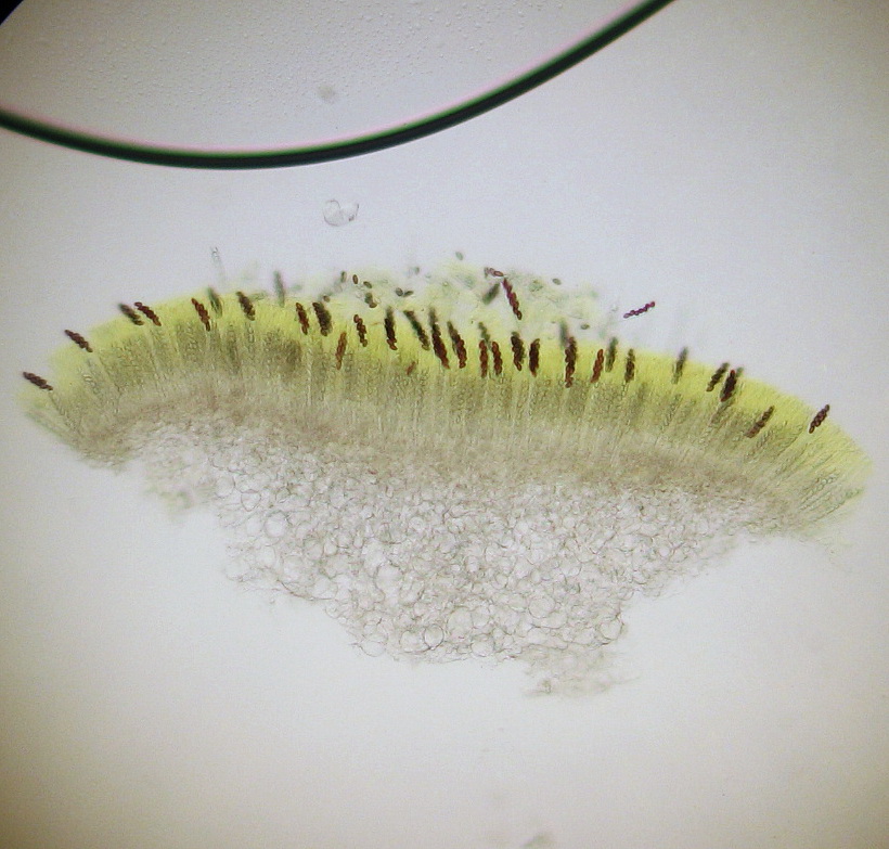 Paraphysen in gelber Schleimmasse, teils kurz septiert, teilweise bis 9µ keulig verdickt