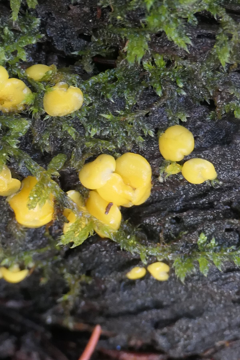 Gelbe Pilzchen mit schwarzen 'Füsschen'