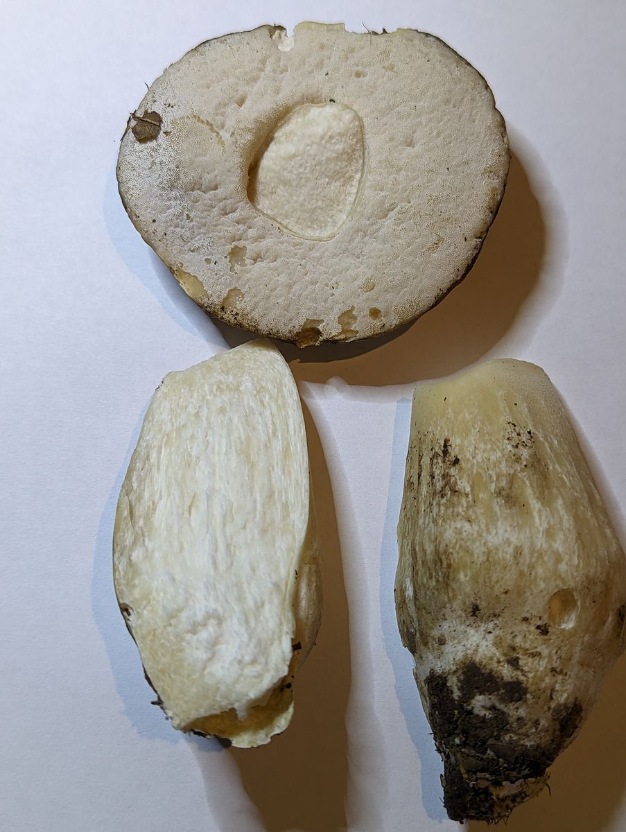 Letztens fand ich einen den ich, aufgrund der schneeweißen Röhren und des fast ganz weißen Kopfes (durch Laubbedeckung), für einen unbekannten Röhrling hielt. Ein Tag bei Raumtemperatur hat daraus dann unverkennbar einen Steinpilz gemacht, da sich sowohl Netz, Röhren- als auch Hutfärbung deutlicher herausgebildet haben.