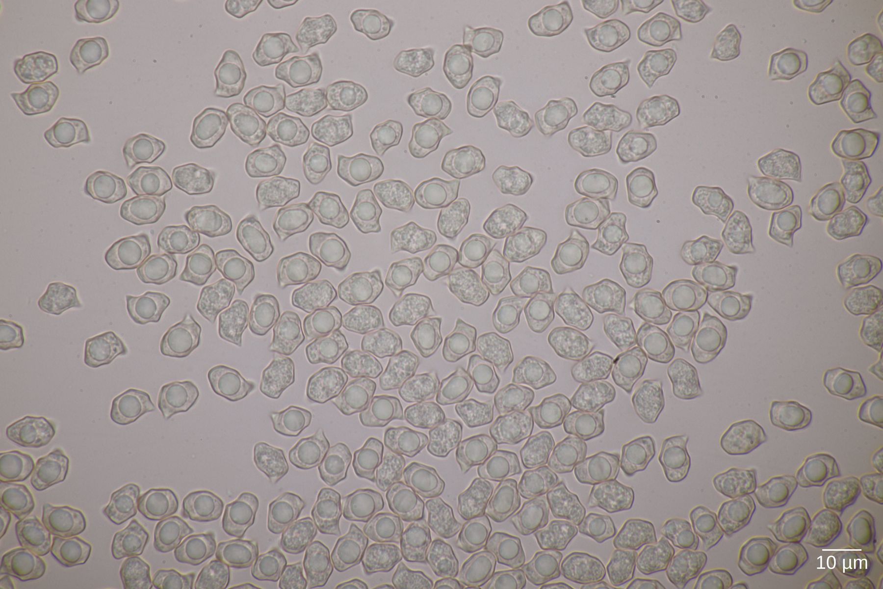 der Beitrag bringt mich aber auf eine Idee. Ich hänge mal ein Bild von einem Entoloma-Sporenabwurf an, inklusive Längenskala. Da kann jetzt jeder mal nach Belieben Sporen vermessen und dann die Ergebnisse präsentieren. Ich bin gespannt, wie sehr die Meßwerte voneinander abweichen werden.