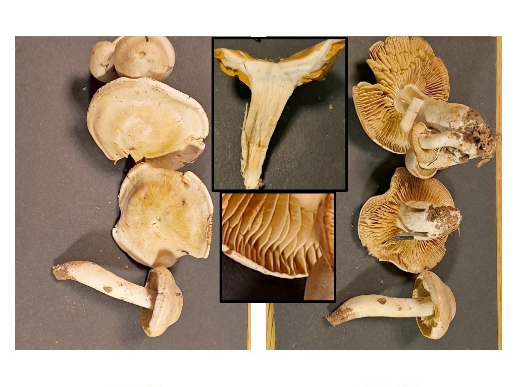 Lamellen jung grau-gelb, alt auffallend (leuchtend) safrangelb!