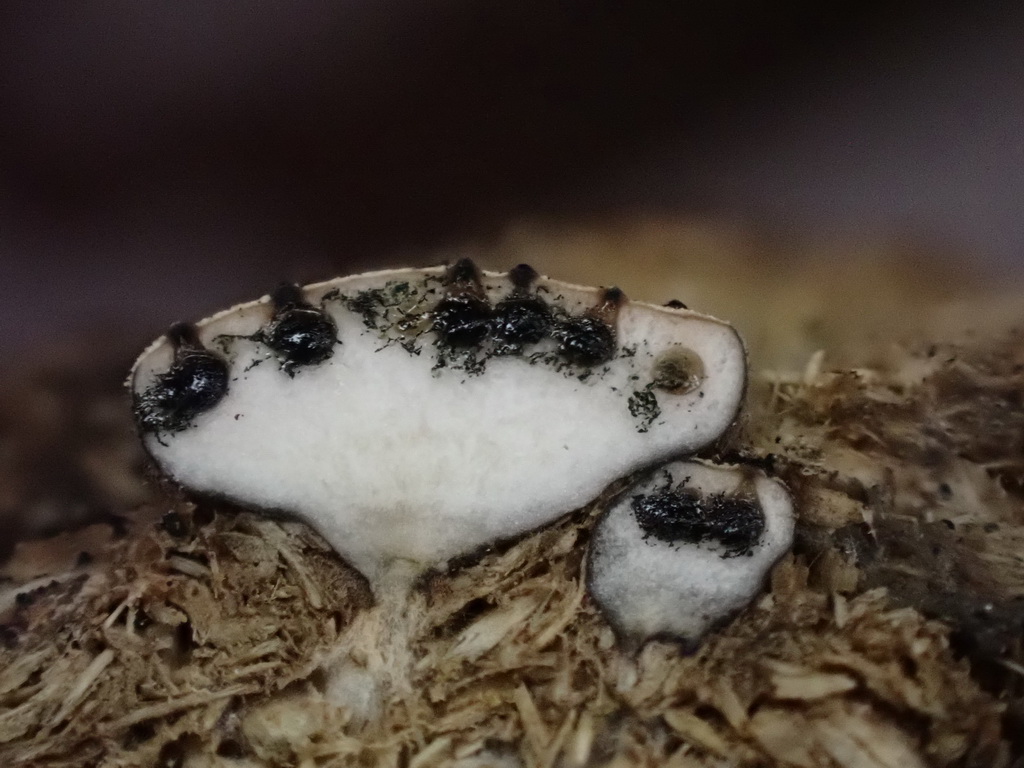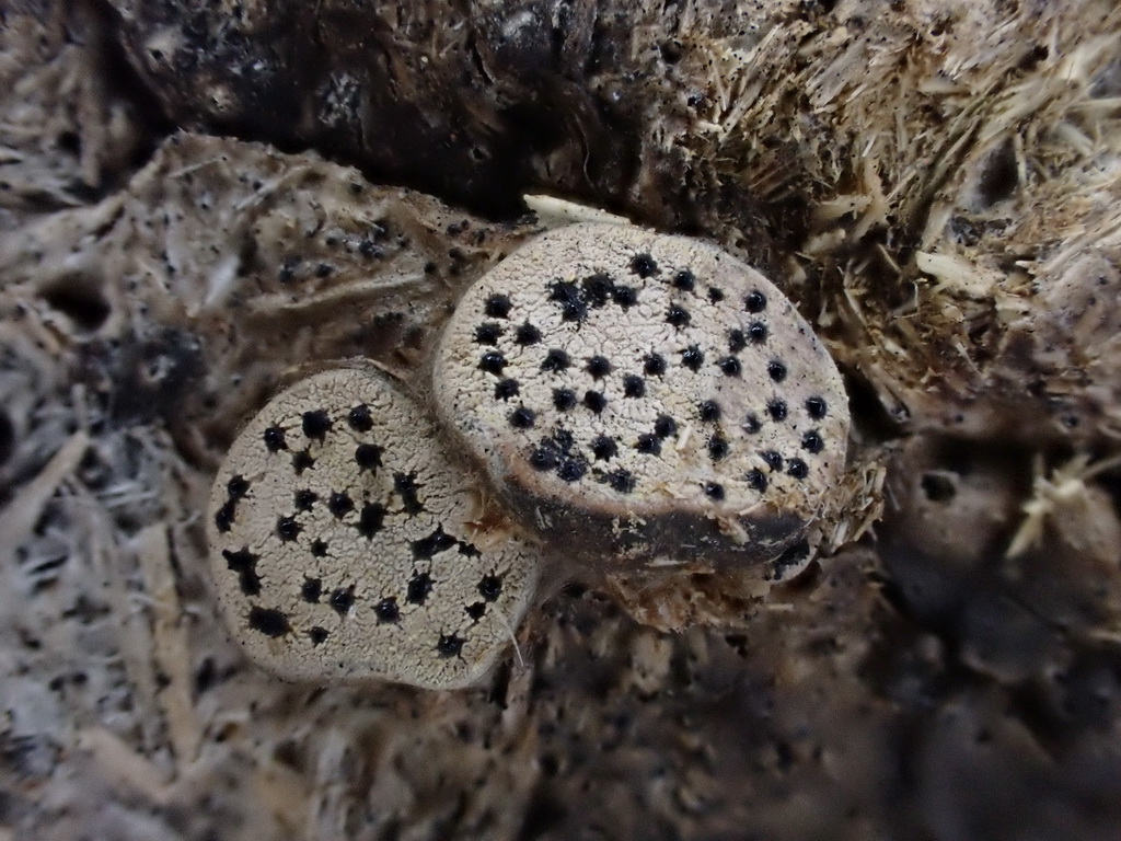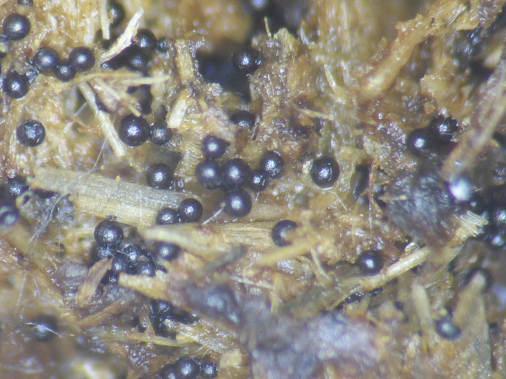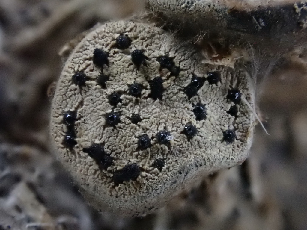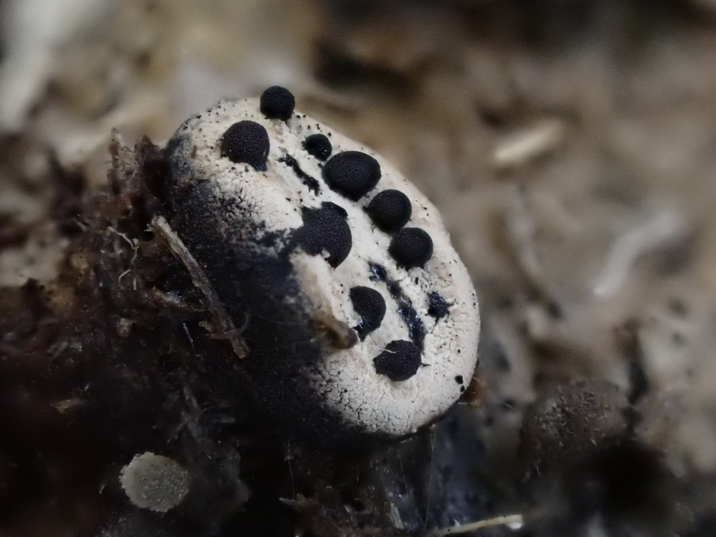 Wie alljährlich Poronia punctata auf Schafdung, kurzstielig. 17.11.2023 Ochsenkopf-Seweckenberge