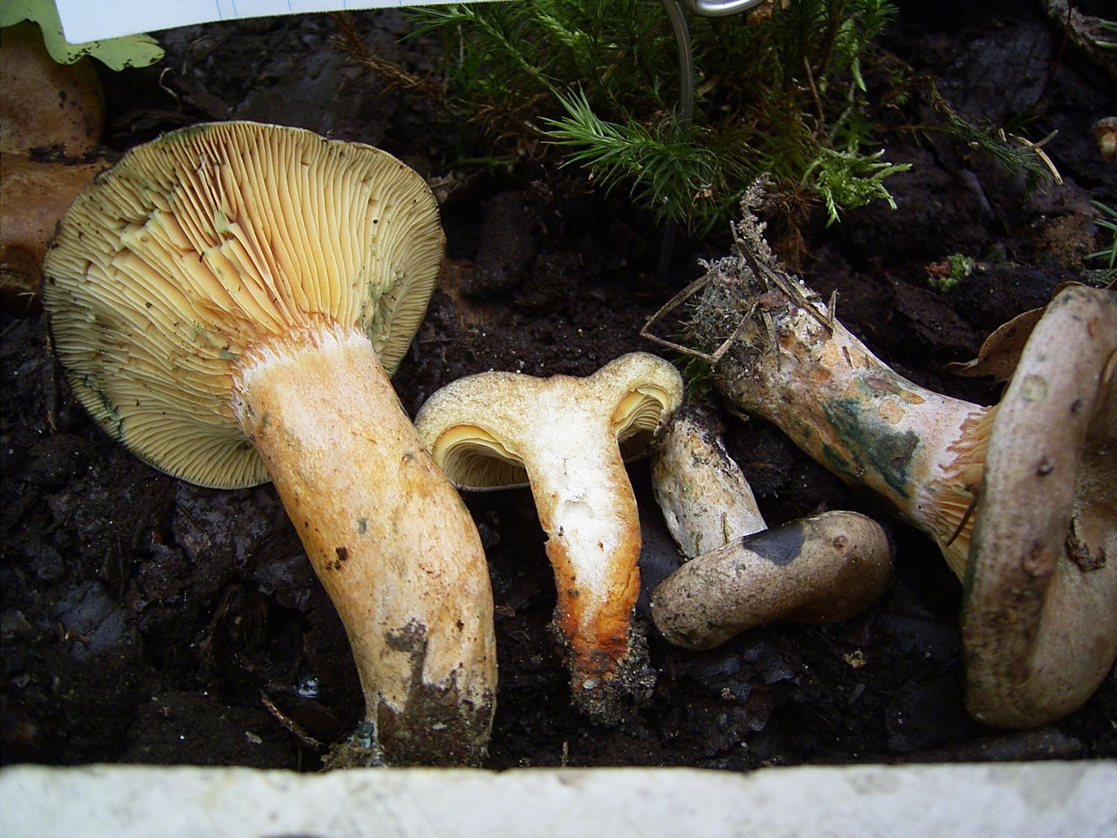 • .. die Milch bei L. deliciosus wäre m.W. aber deutlich karottenorange u. nur in sehr geringen Mengen vorhanden, bei L. quieticolor wäre die Milch orange / rötlich-braun u. dann grün. Oder liege ich damit etwa falsch?
