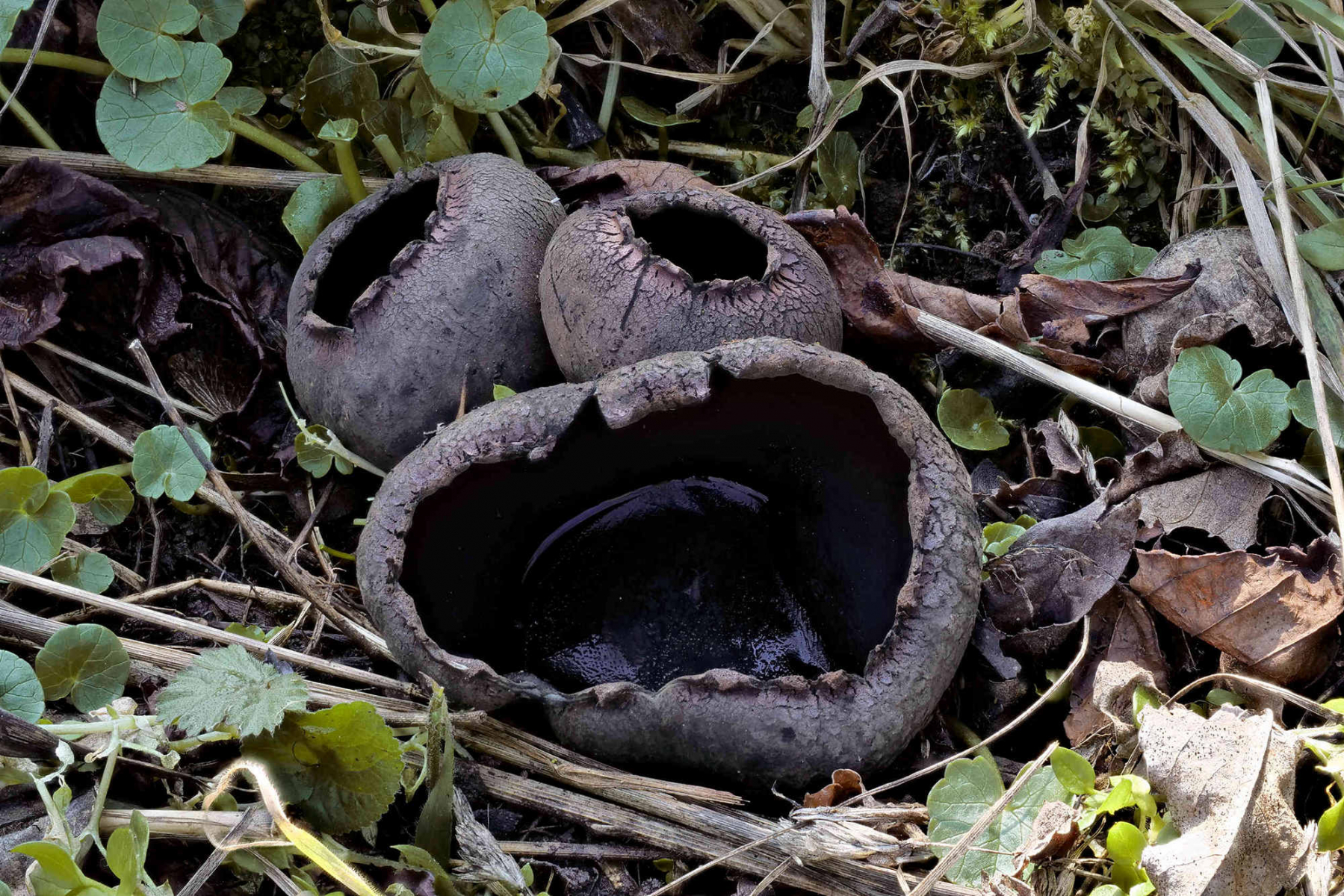 Dann kam die Zeit der Urnula craterium, des Schwarzen Klechpilzes, und Microstoma protractum, des Eingerissen Tulpenbechers.