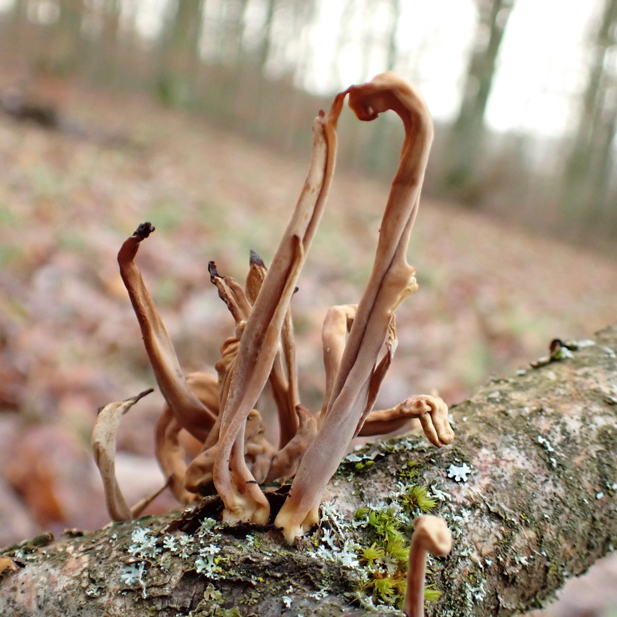 Zunächst dachte ich, es seien Fruchtkörper (welcher Art auch immer), die ihre Hüte verloren hatten, vielleicht durch den Frost. Aber beim näheren Hinsehen sah das irgendwie ganz merkwürdig aus.
