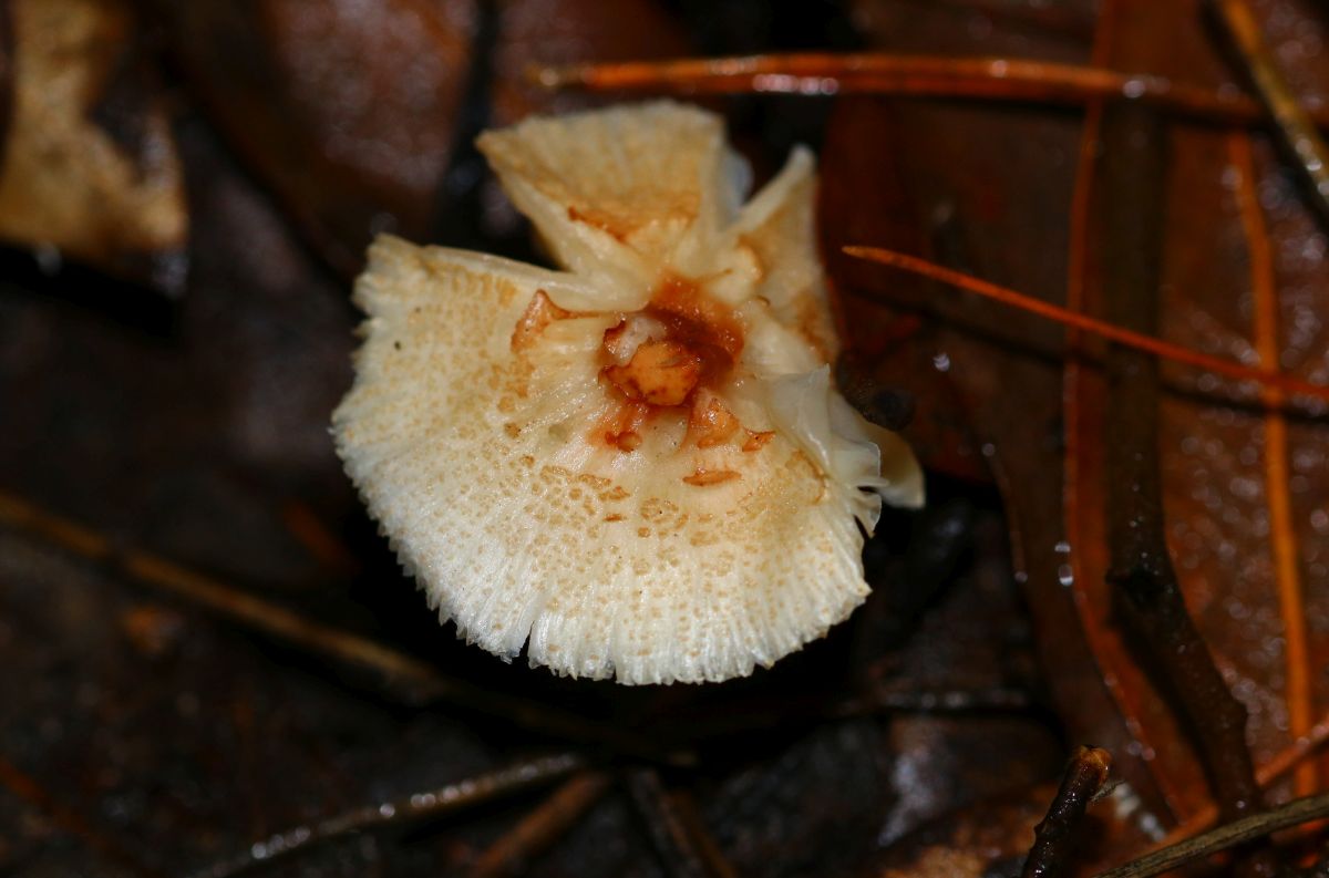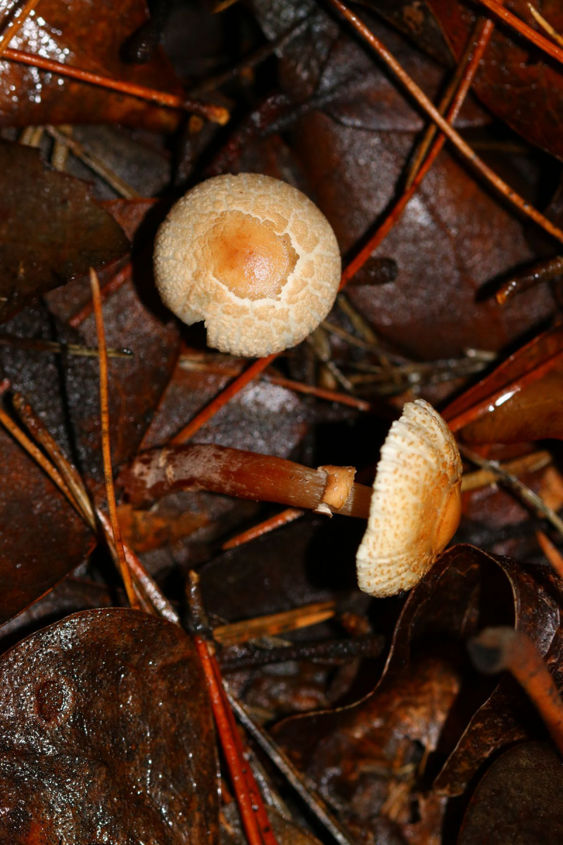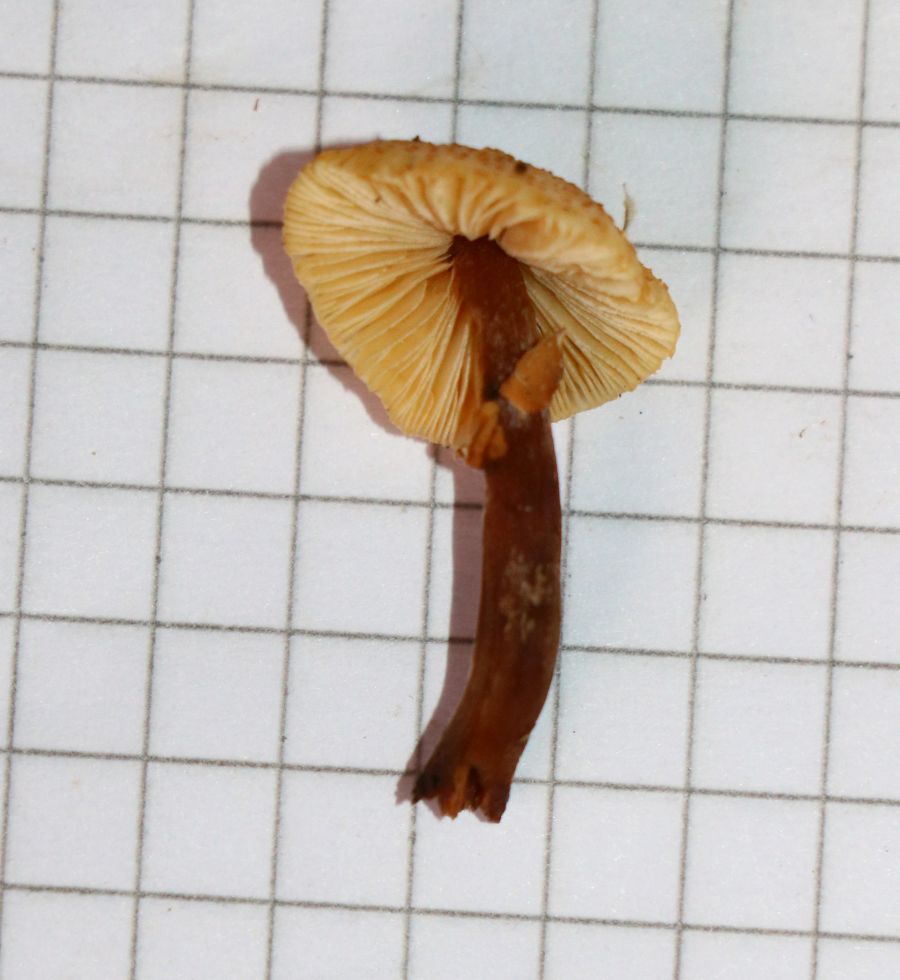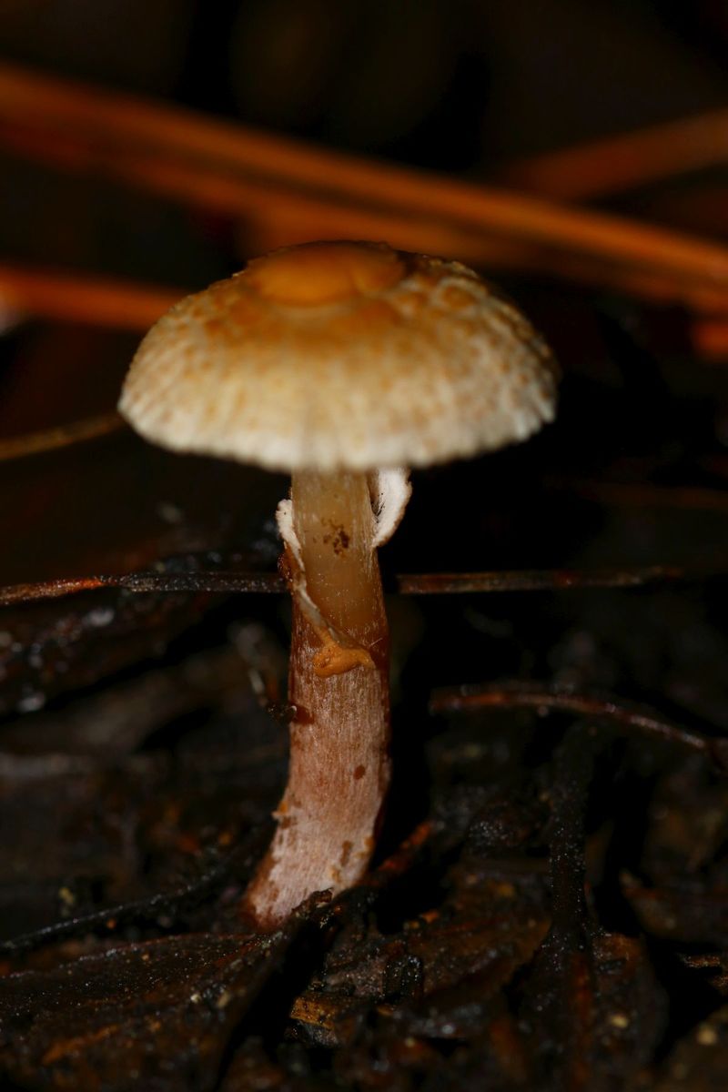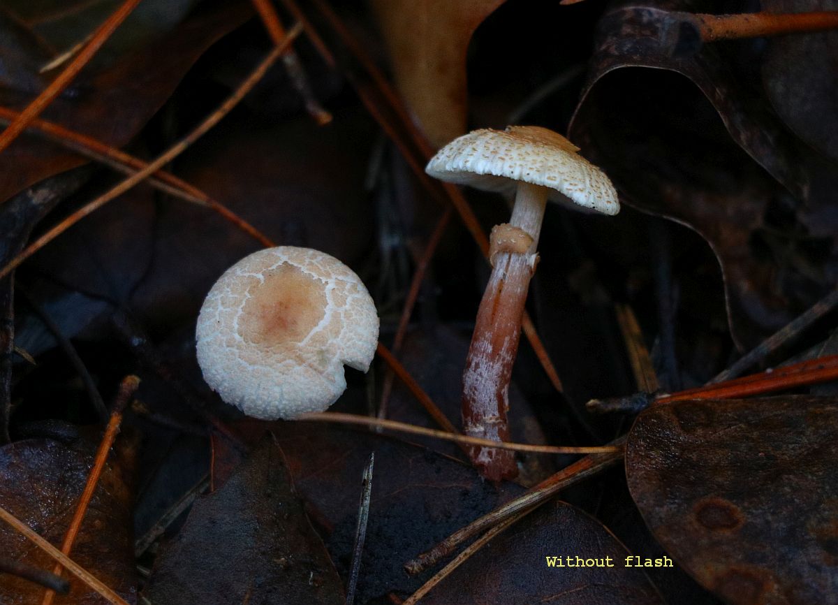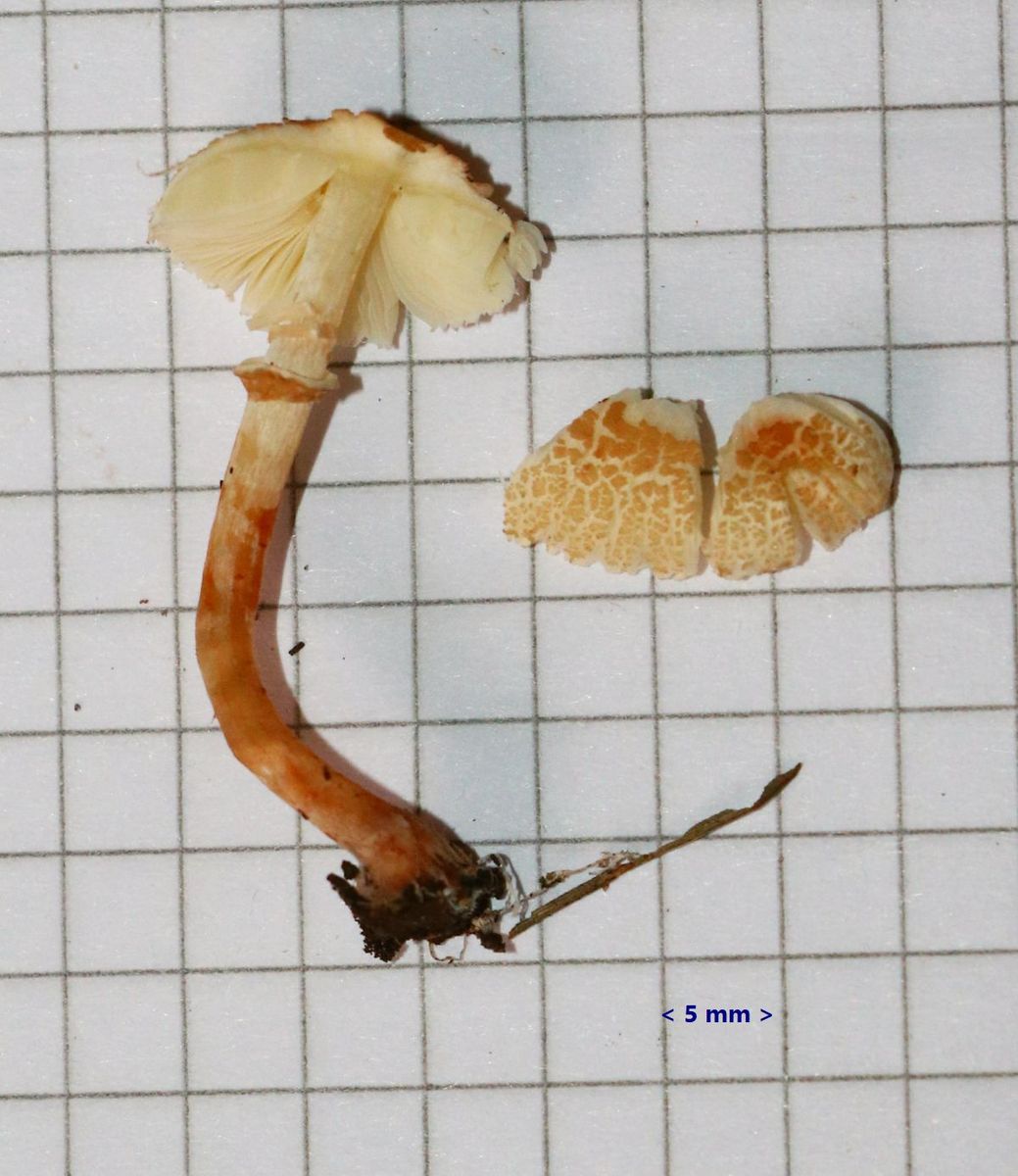 I have another Lepiota to show you. No microscopy for the time-being but specimen are being dried. Three specimens growing under oak tree (Quercus ilex) although Pine trees are also present not far. Specimen small, around 3cm tall with a cap about 2cm. Ring present but deteriorated with time. From my understanding, the stipe darkens to reddish brown with age that at one point when at home, I thought I might have gathered two different species, but on seeing photos in situ I believe they are all the same species. Margin pleated. Very elegant the tufts of veilar remains, toffee-brown in colour. Your opinions are welcomed on how to help to get an identification, unless molecular sequencein is the only way forward. Thanks!