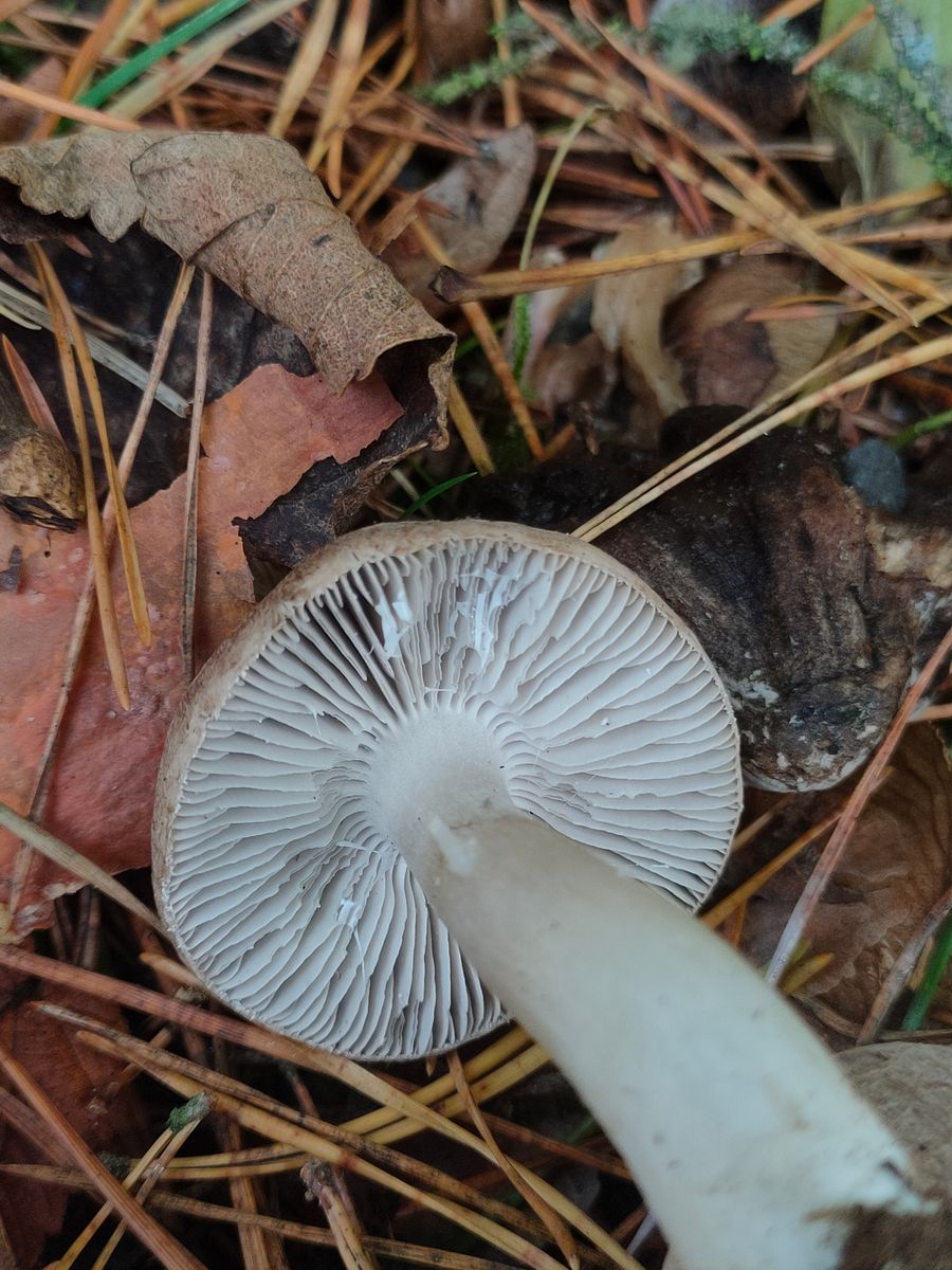 Einschätzung: Aufgrund der des gerippten Hutrandes -> Tricholoma stiparophyllum, der Gerippter Gasritterling