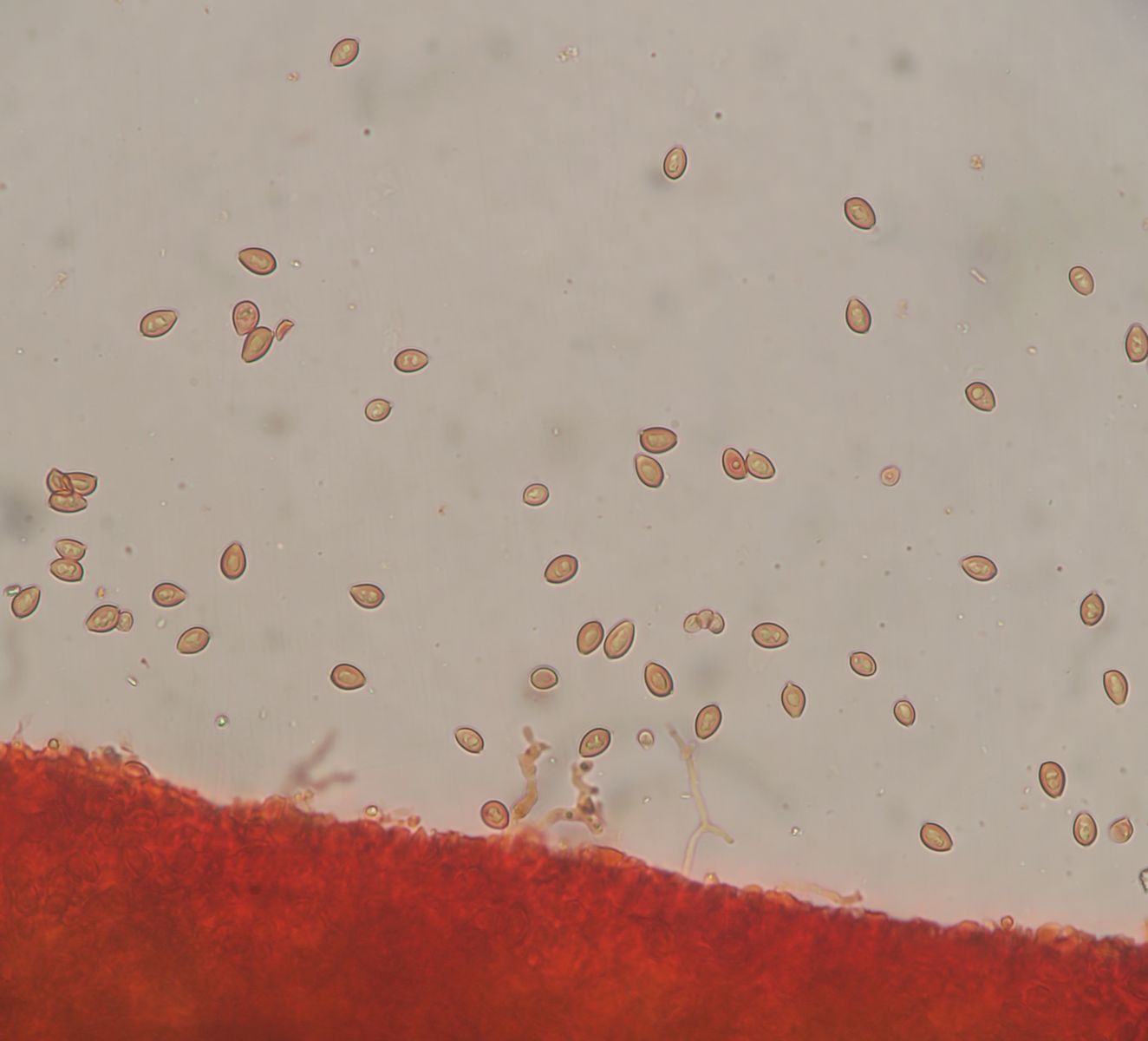 So finally I had time to examine the spores and gills of an exsiccatum which was not in very good shape (larvae destroyed physically part of the specimen. Here are some notes: