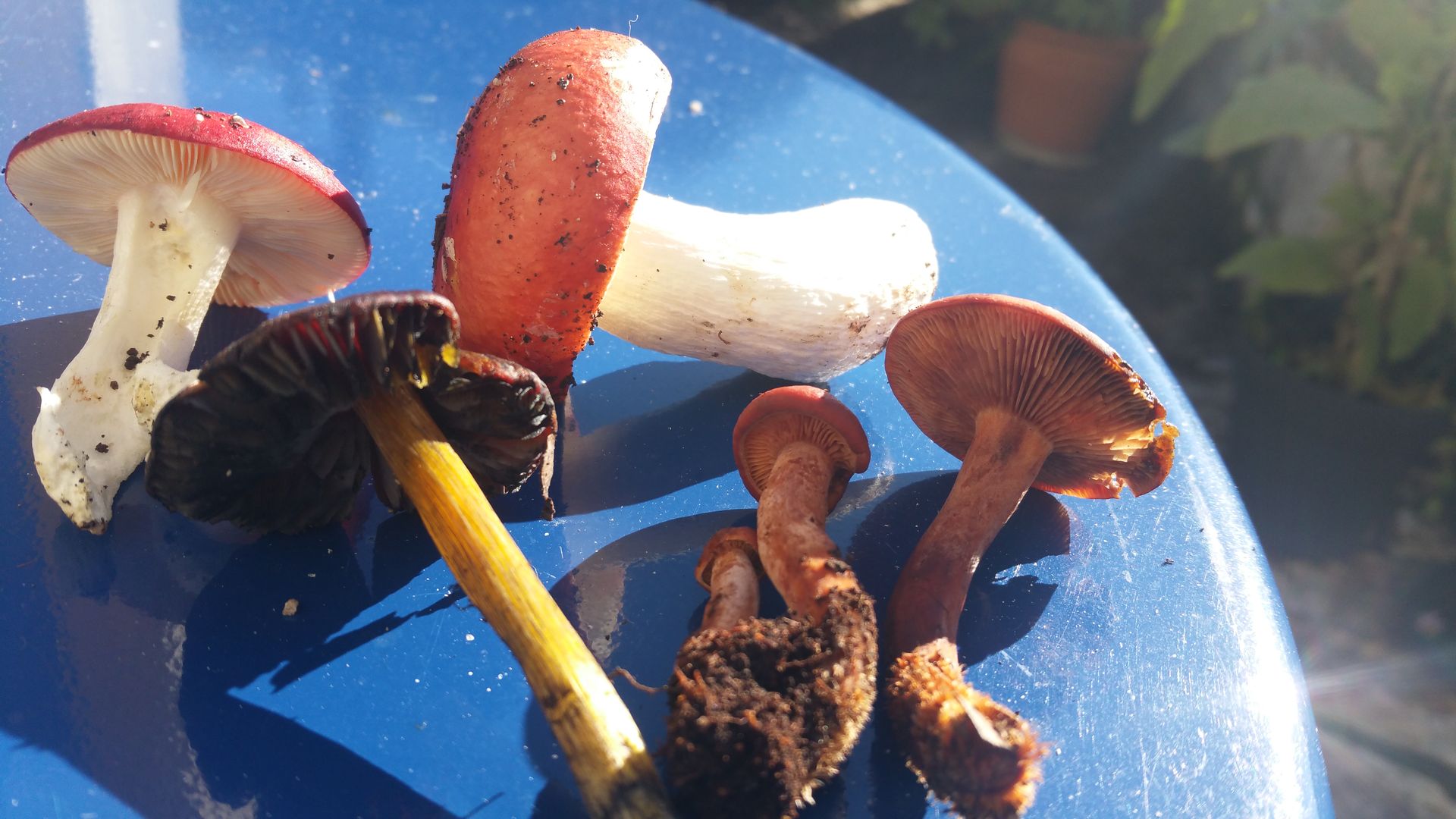 Die Braunroten sehen nach Milchlingen aus, das kannst du ja mal testen, ein Schnitt in die Lamellen sollte milchen