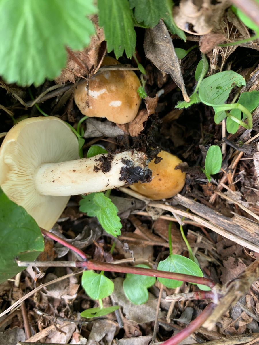 2. Am ersten April dann auf einer Pilzwanderung der erste Knaller (für mich, manchen anderen war der Standort schon bekannt): Hygrophorus marzuolus, der Märzschneckling, vollkommen unversehrt. Habe mich riesig gefreut.