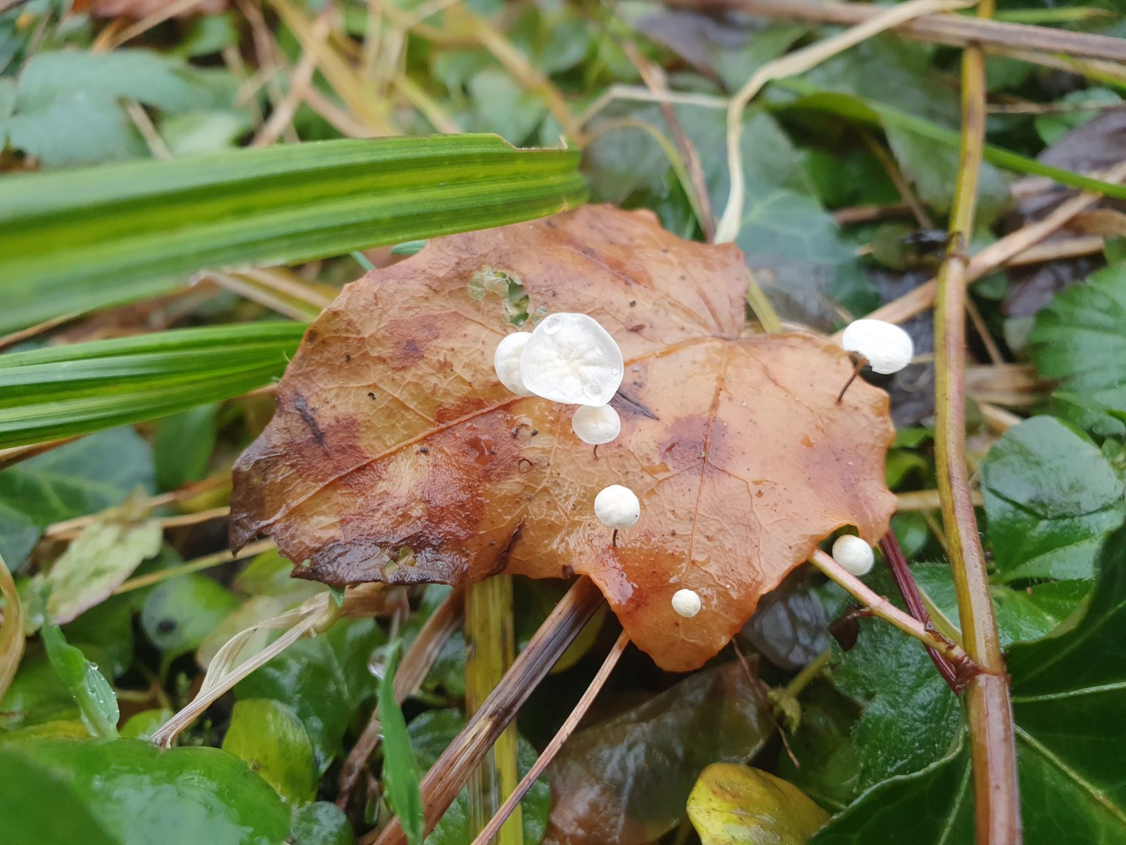 heute habe ich im Garten diese kleinen Kerlchen gefunden. Mit dem hellen Hut, dem nicht vorhandenen Collar, dem Vorkommen auf Efeublättern und seeeehr weit auseinander stehenden Lamellen kam ich mit den mir bekannten Schwindlingen nicht weiter. Bei meiner Recherche bin ich dann auf den Efeublatt-Schwindling (Marasmius epiphylloides) gestoßen, der super passt. Kommen da noch weitere Arten in Betracht oder ist das so schon eindeutig?