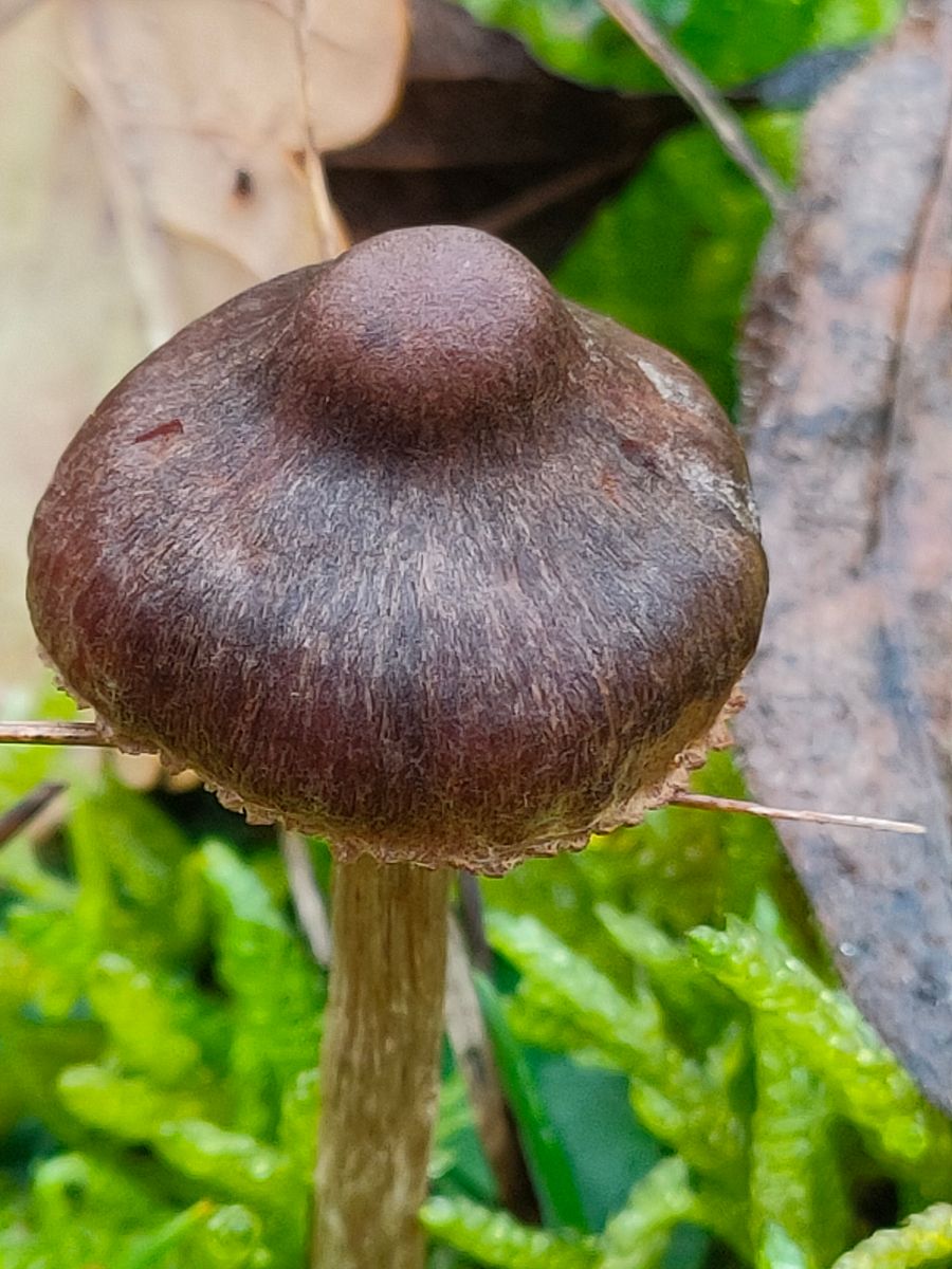 3. Cortinarius/Talamonie/Wasserkopf: Wiesenbewohner Magerwiese, ausgesprochen glockig und gebuckelter weiss überfaserter brauner