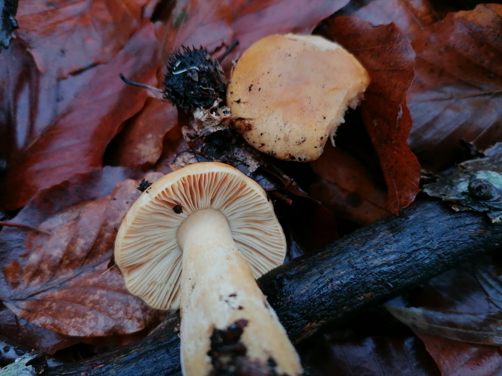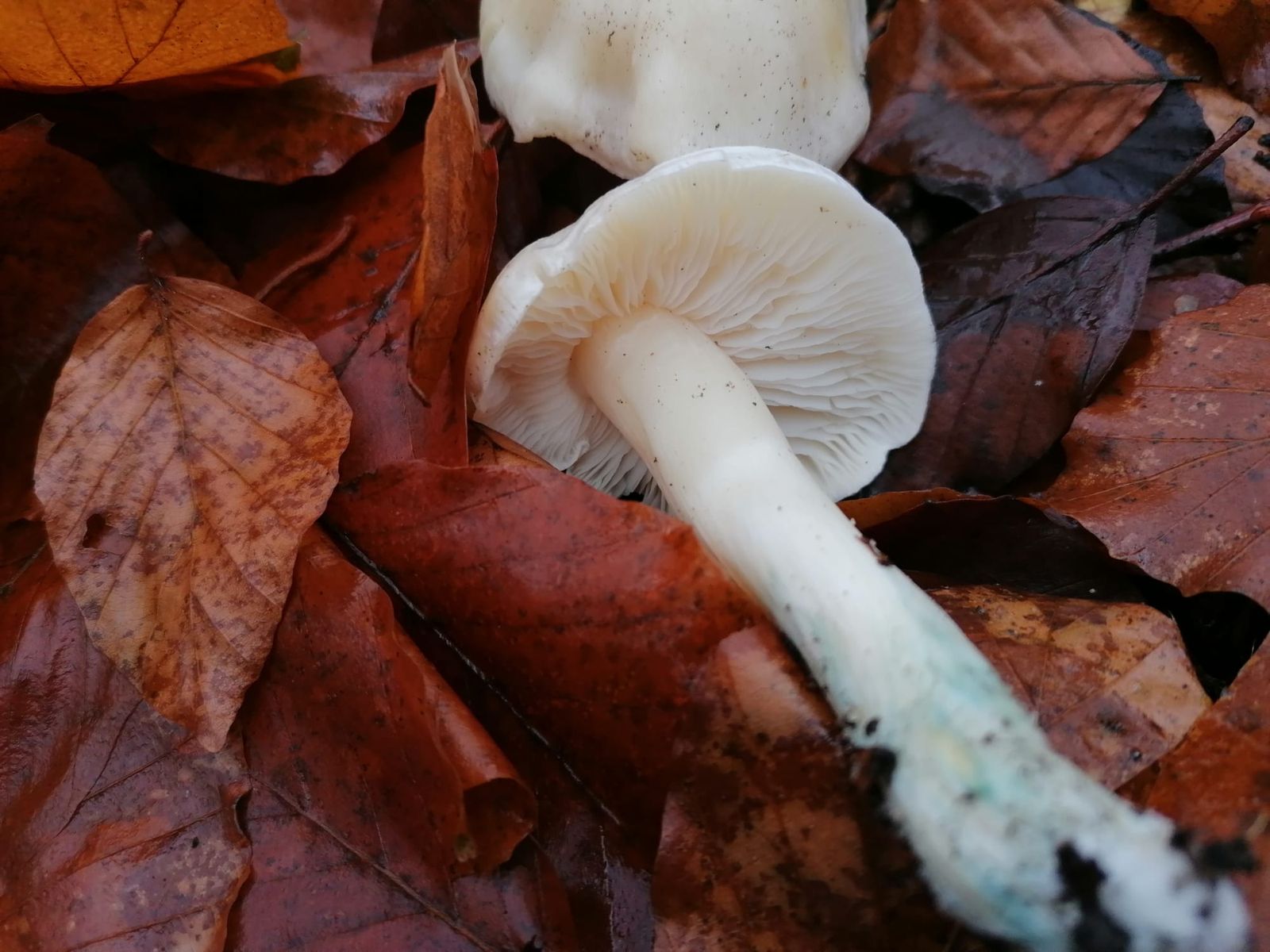 Einen speziellen Geruch hatten die FK nicht, wuchsen im Laub auf dem Boden im Buchenwald mit vereinzelten Kiefern drin. Markant war bei der einen Art, wie auch auf dem Bild zu sehen, die blaue Verfärbung am Stiel.