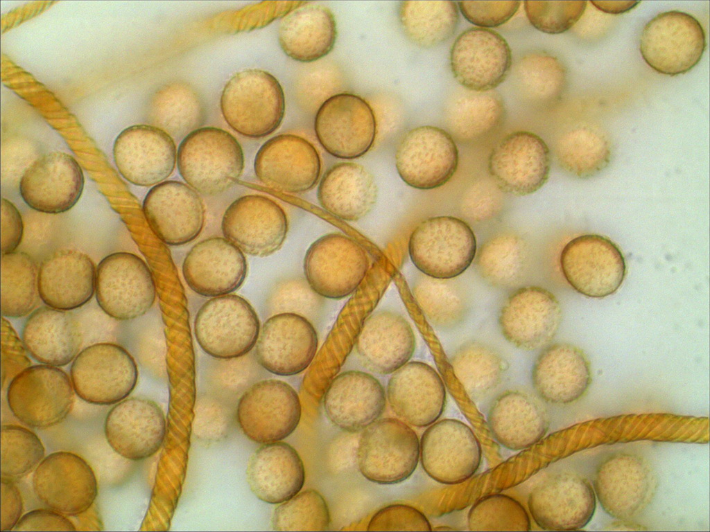Guten Morgen diese Trichia habe ich an altem Hasel gefunden, mit schwarzer Peridie. Trichia botrytis sollte doch eigentlich felderig aufreißen, eine andere Idee habe ich leider nicht. Vielen Dank schonmal für eure Antworten, LG Harzi Sporen 11.4-12.7 x 11.0-11.5µm