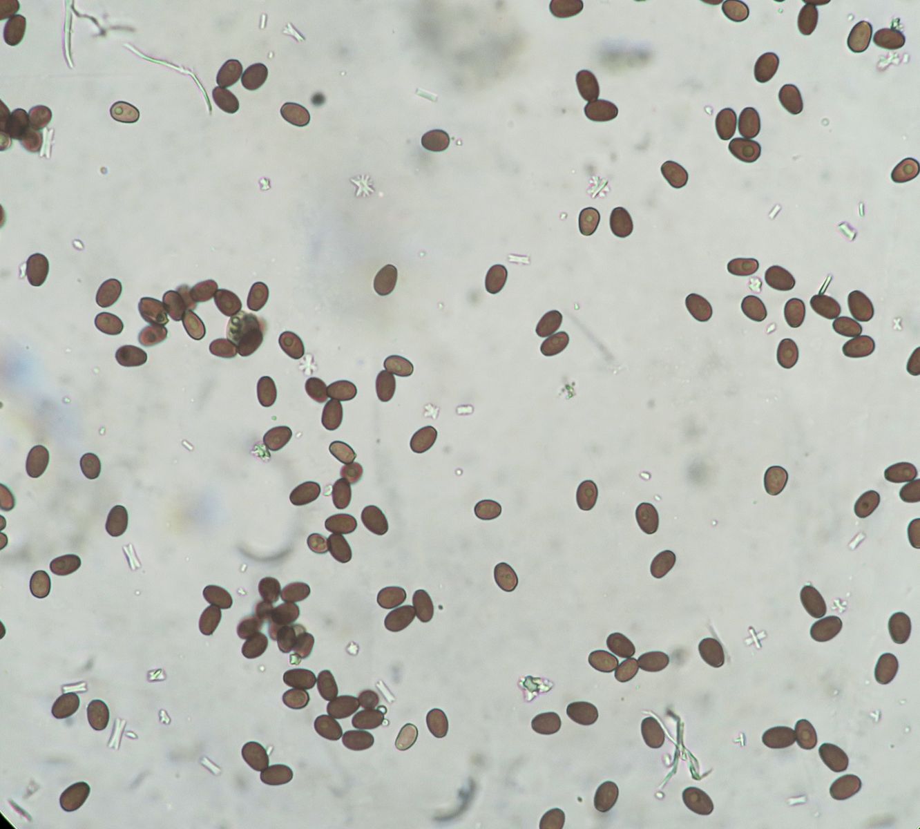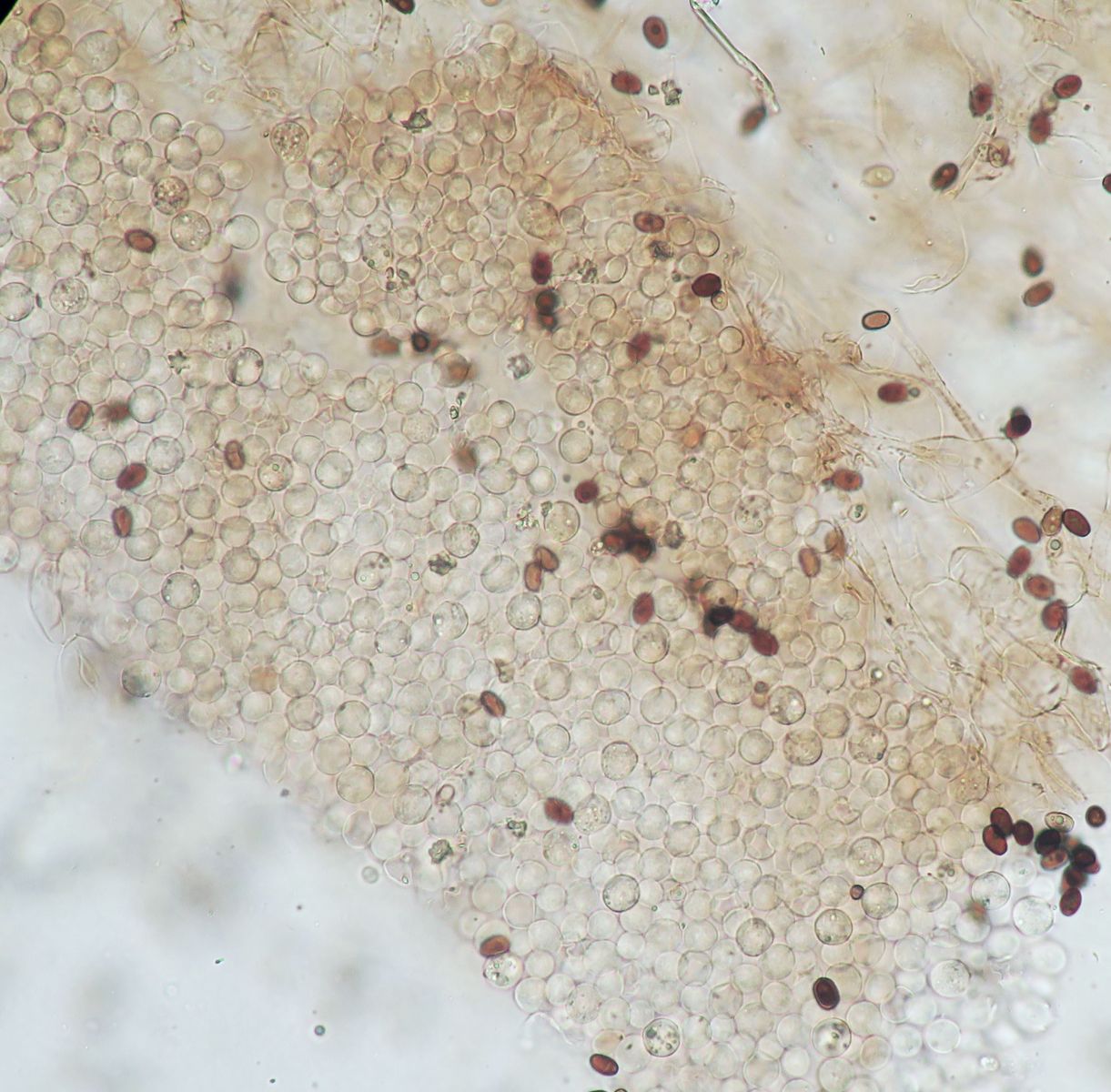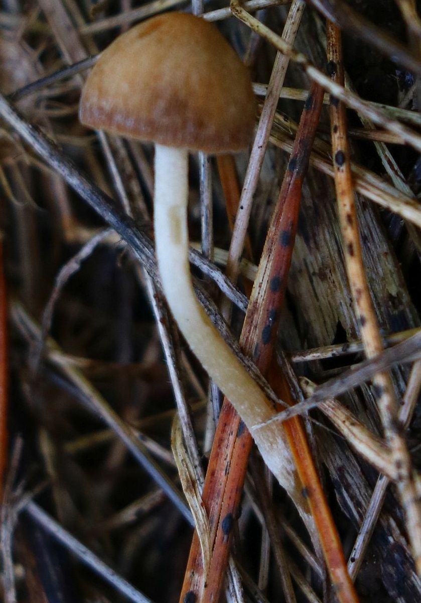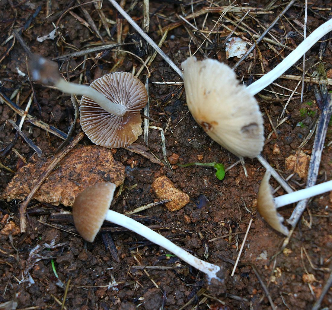 I found this Psathyrella s.l. which is likely a new species for me. It has hazelnut-brown pileus with tiny white fibrils on the pileus (veil remnants) which goes beige-tawn when dry (hence hygrophanous). Because of these fibrils I do not think it is a Parasola. Spores sizes: (6.8) 7.4 - 8.4 (8.6) × (4.5) 5 - 5.7 (5.8) µm // Me = 7.9 × 5.3 µm; They have a wide germ pore. Cheilocystidia abundant, not very large / Pleurocystidia seen, rare or infrequent. The fibrils of the remnant veil seems to have some incrustated pigment. I think I have also seen Pileocystidia (not sure - see last image).