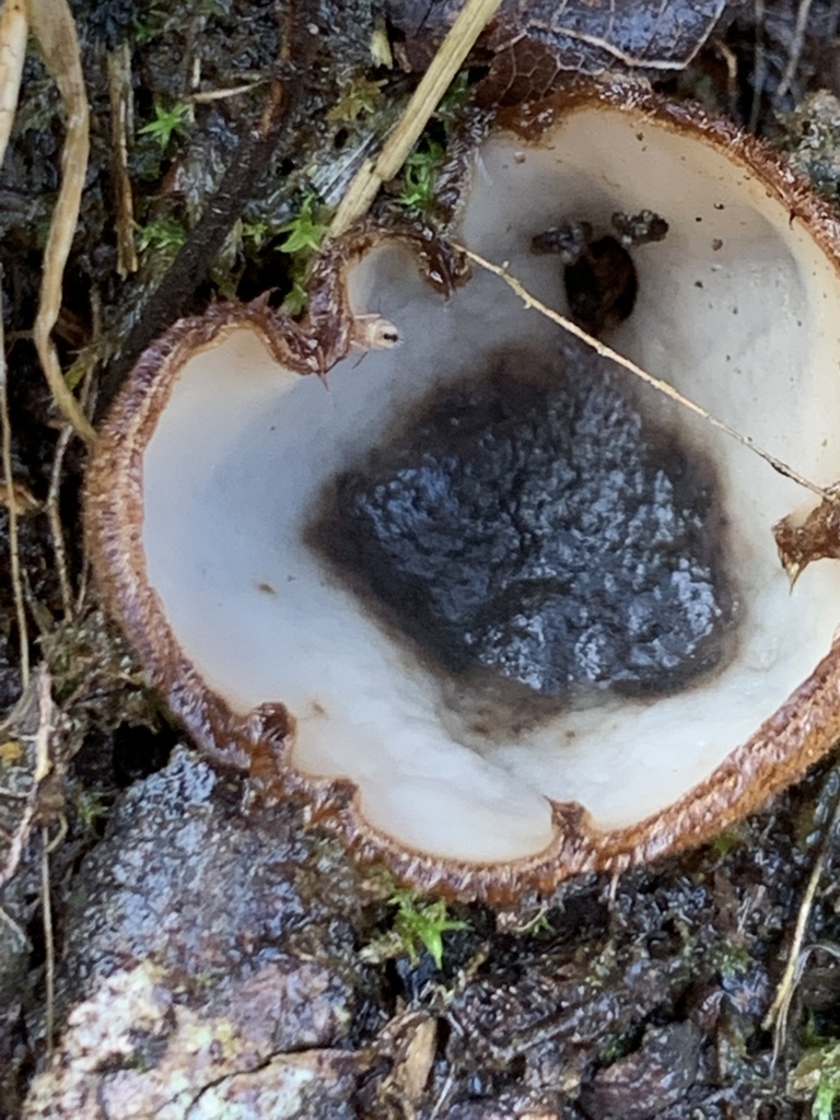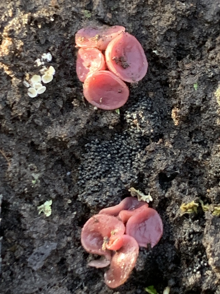 Der erste Fund ist ein Becherling, der auf dem Boden wächst und an einer lichten Stelle mit Moosbewuchs unter Quercus wächst. Der Becherling ist außen leicht behaart.