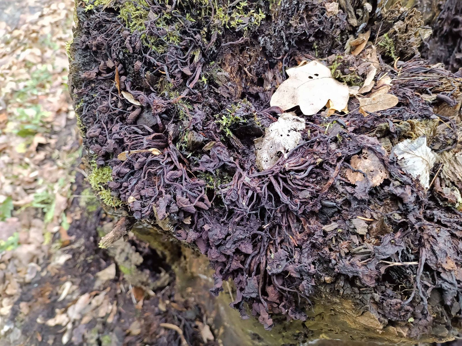 Überall findet man die üblichen Rindenpilze. Dazu häufig Plicatura crispa, den Krausen Adernzähling, diverse Schichtpilze, etc.
