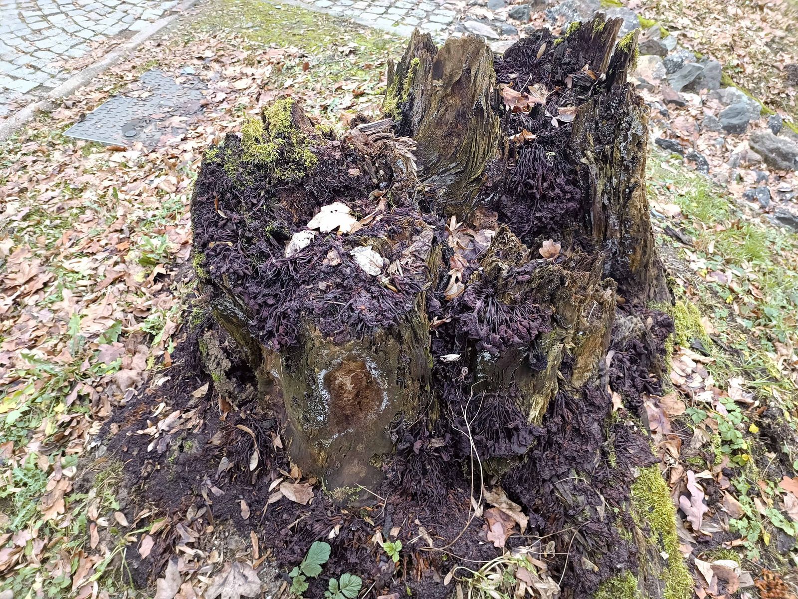 Dann komme ich zu einem interessanten Stamm. Eigentlich wächst dort Flammulina velutipes. Schon von Weitem sah ich, das dieses Jahr etwas anders ist.
