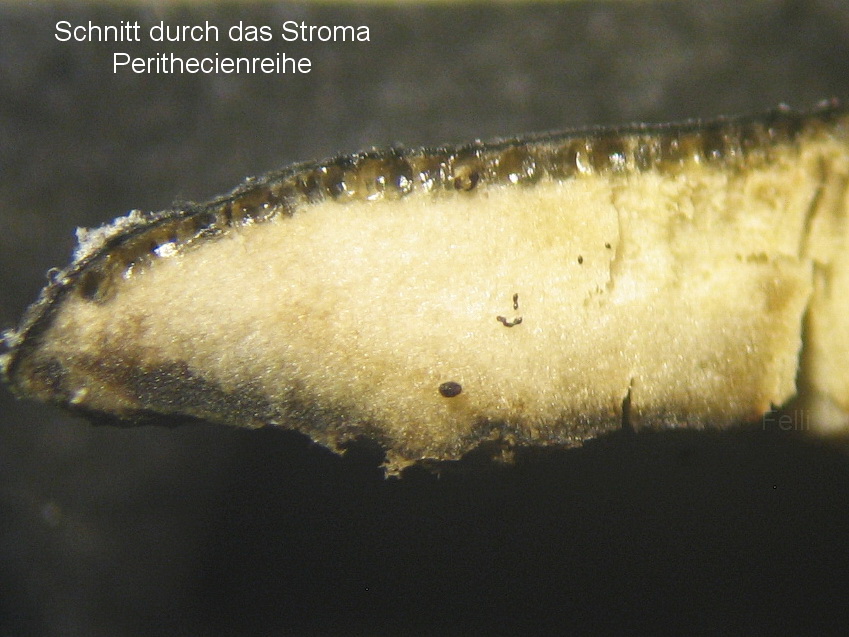Perithecien 180-200 x 120-130µ in Reihe im weißlichen Stroma.