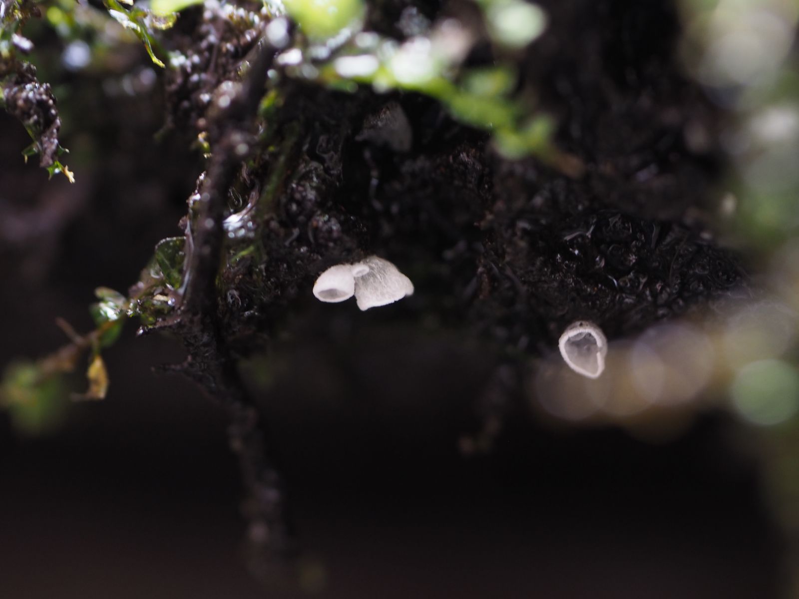 Diesen kleinen Mützen wollte ich eigentlich auf den Zahn fühlen. Weil ich wusste, dass ich erst einige Tage später zum mikroskopieren kommen würde hatte ich sie aufs Wellblechdach unseres Fahrradschuppens zwischen andere Moospolster gelegt. Dummerweise kam ein Nachbar just auf die Idee sich ein Moos-Terrarium zu bauen und so ward das Stückchen unauffindlich verbaut. Es bleibt daher bei cf Chromocyphella musciola. Da kommt aber doch noch einiges Anderes auch in Frage.