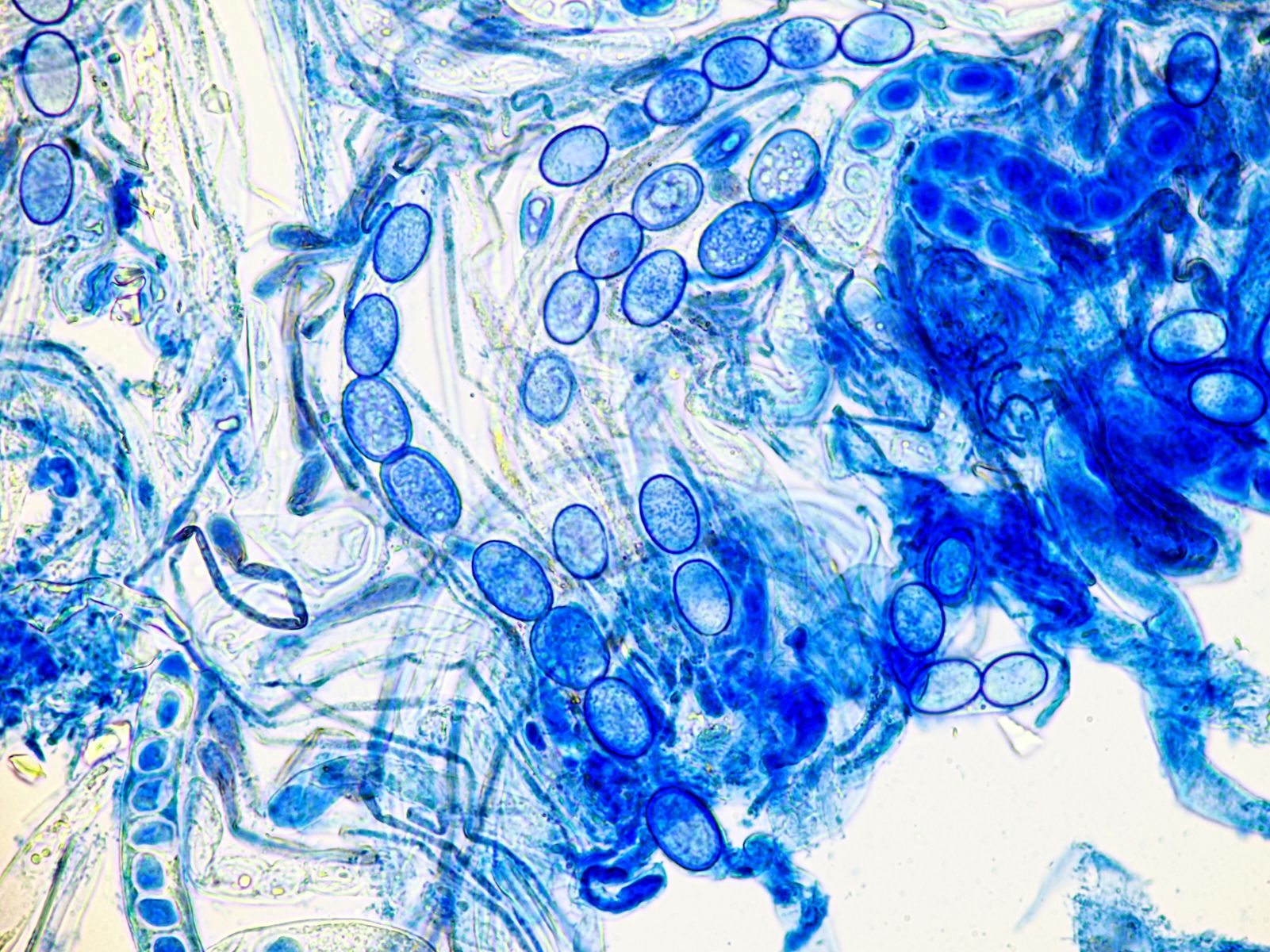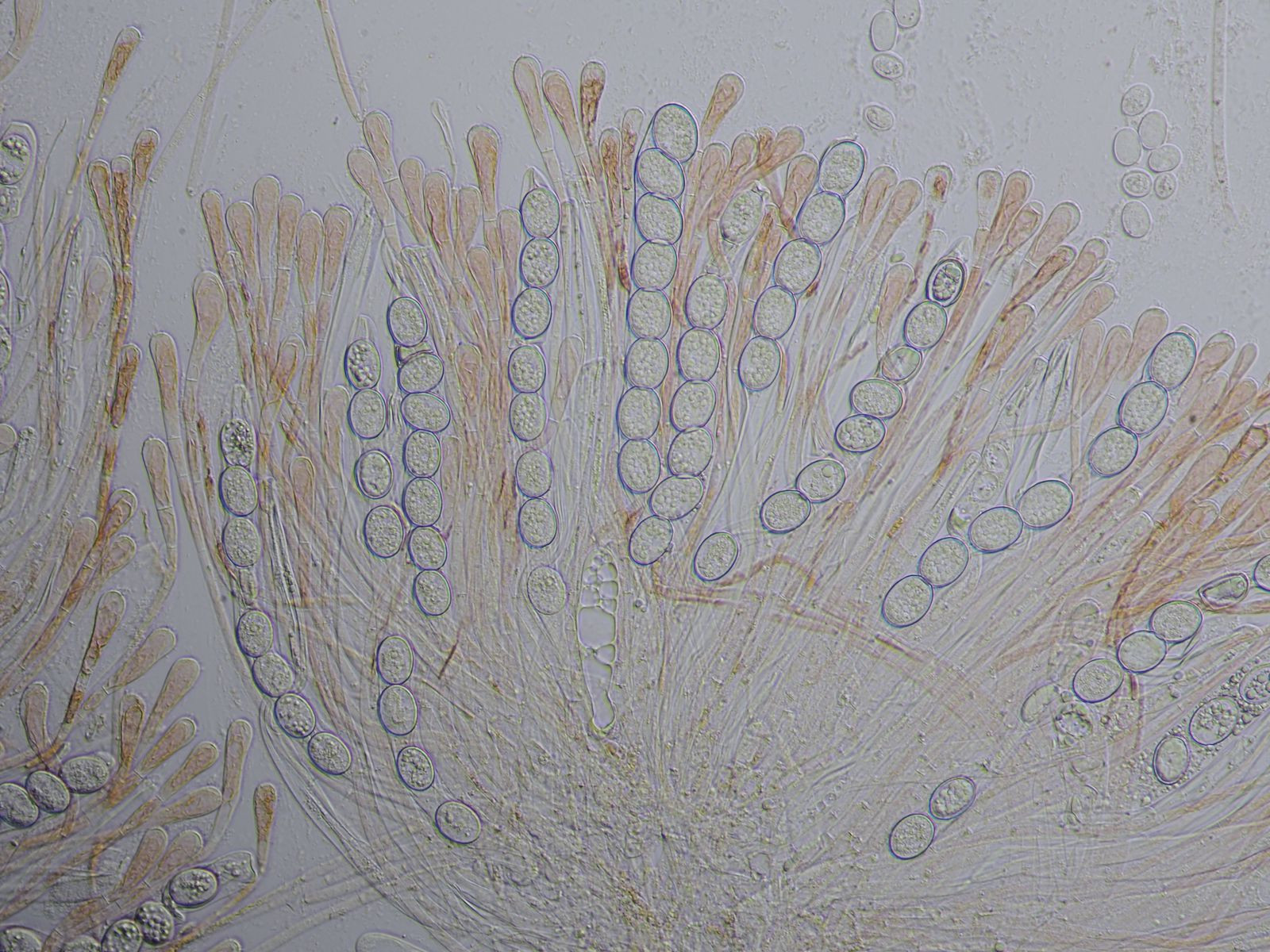 *Zuderm muss ich zugeben, dass ich eine Beurteilung der Ornamentation schwierig finde. Die freiliegenden Sporen aus dem Abwurf hat es mir beim Durchziehen des bwb fast alle weggewaschen, die verbliebenen waren stark alteriert, auch das Erhitzen will sehr vorsichtig durchgeführt werden. Im Ascus gelang das besser, aber dort ist das Ornament schwieriger zu beurteilen. Im Durchfokussieren war es zwar besser zu sehen als auf dem statischen Foto, aber dennoch würde ich mir nicht zu trauen hier eine "Höhe" zu messen zu wollen.