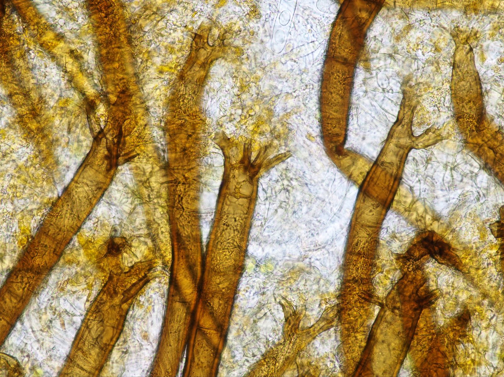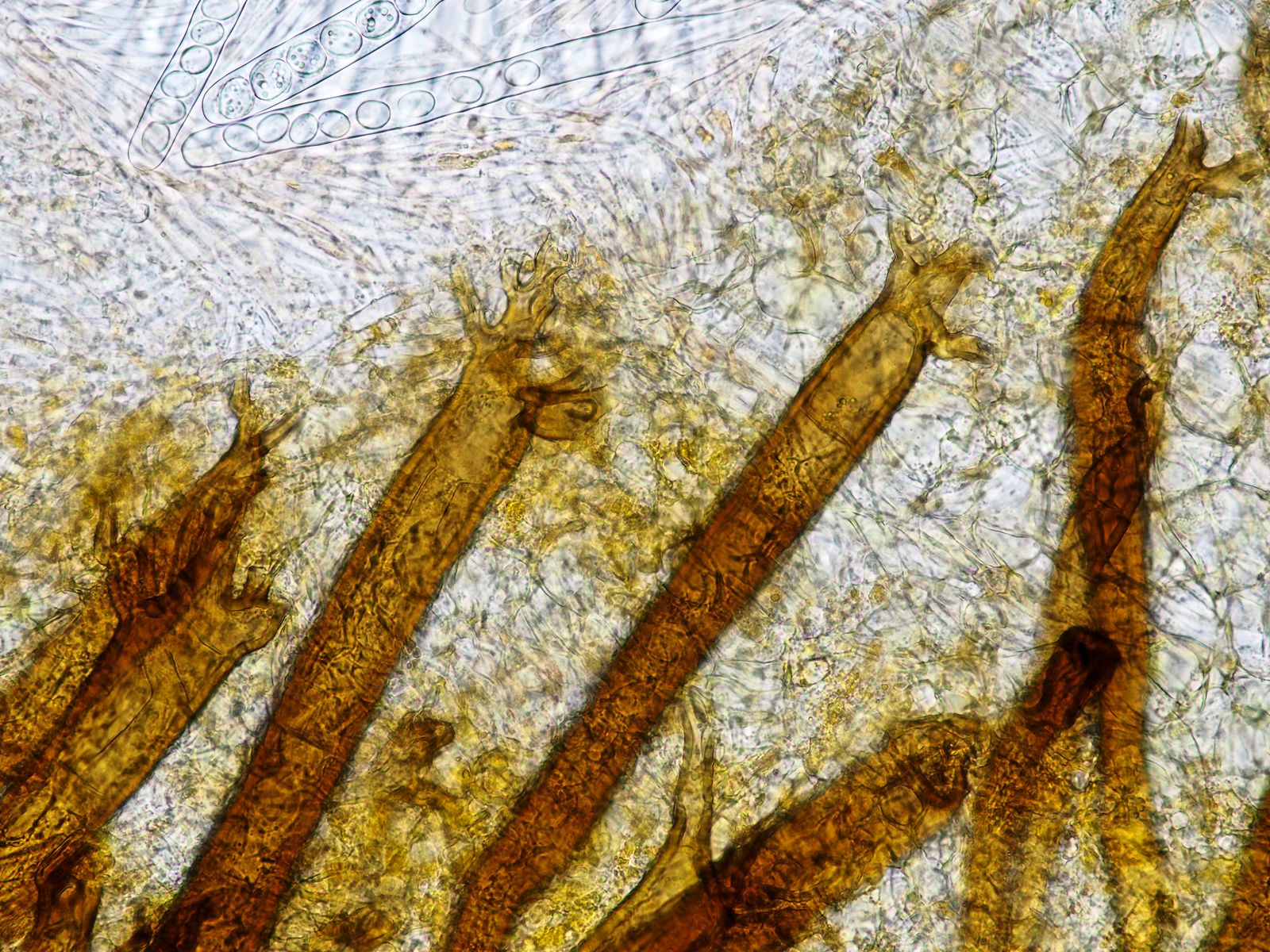 ein paar Tage später leider bereits mit Trockenschaden; die Zystiden auf allen Teilen sind gerade zu erahnen