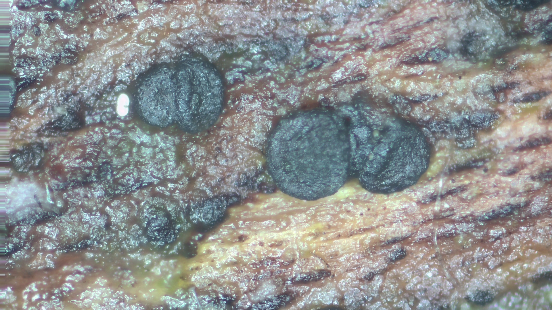 Auf Laubholz habe ich kleine Kolonien sehr kleinen aufsitzenden Ascomyceten entdeckt. Es hat noch keine wirklich reife Sporen